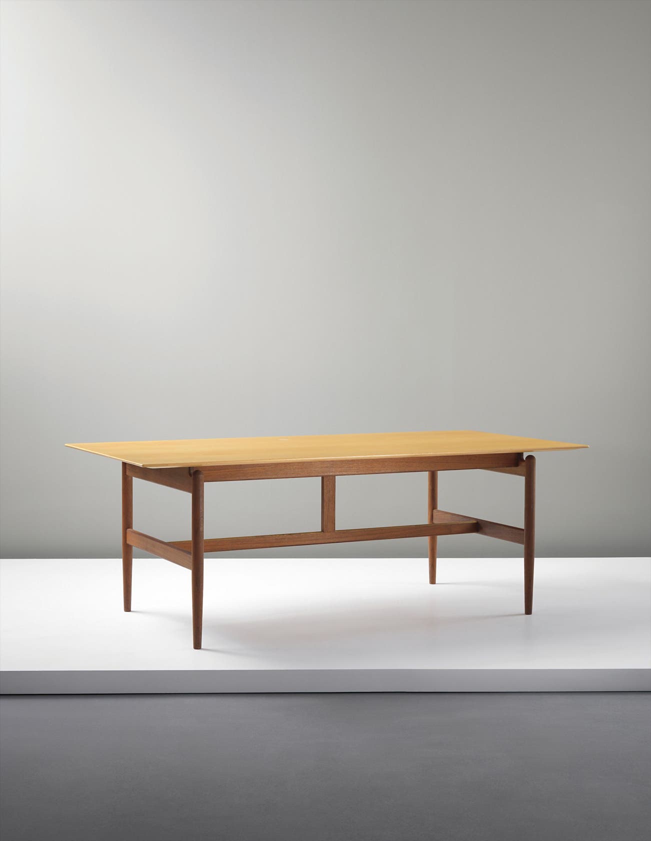 Included in the permanent collection the worktable forms part of a room interior designed by Finn Juhl for the Nordenfjeldske Museum of Applied Art, Trondheim. The model was also exhibited at the 'Copenhagen Cabinetmakers’ Guild', Kunstindustrimuseet, Copenhagen, 28 September–14 October 1945, Stand 14 and then 26 September-12 October 1952, Stand 15.