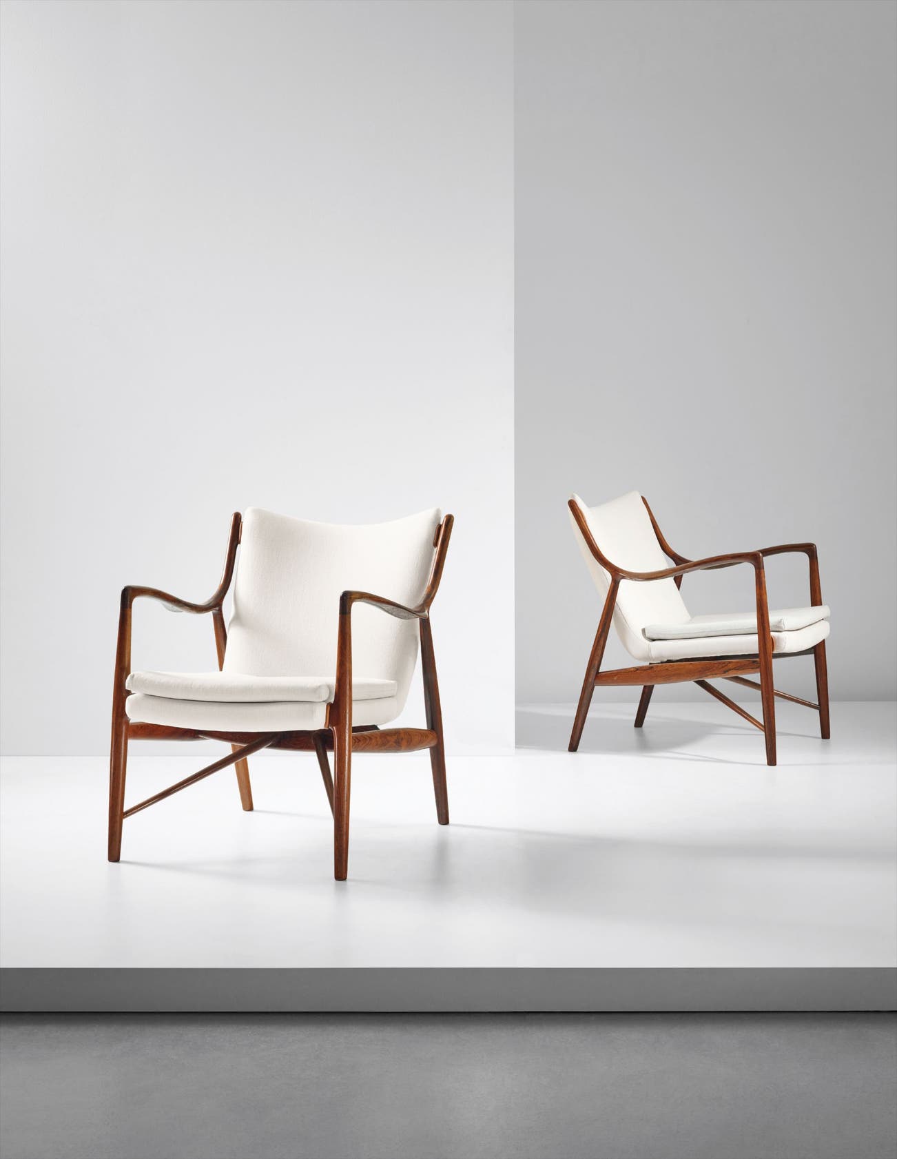 Executed by cabinetmaker Niels Vodder, Copenhagen, Denmark. Each underside branded and impressed with NIELS VODDER CABINETMAKER/COPENHAGEN DENMARK/DESIGN FINN JUHL.