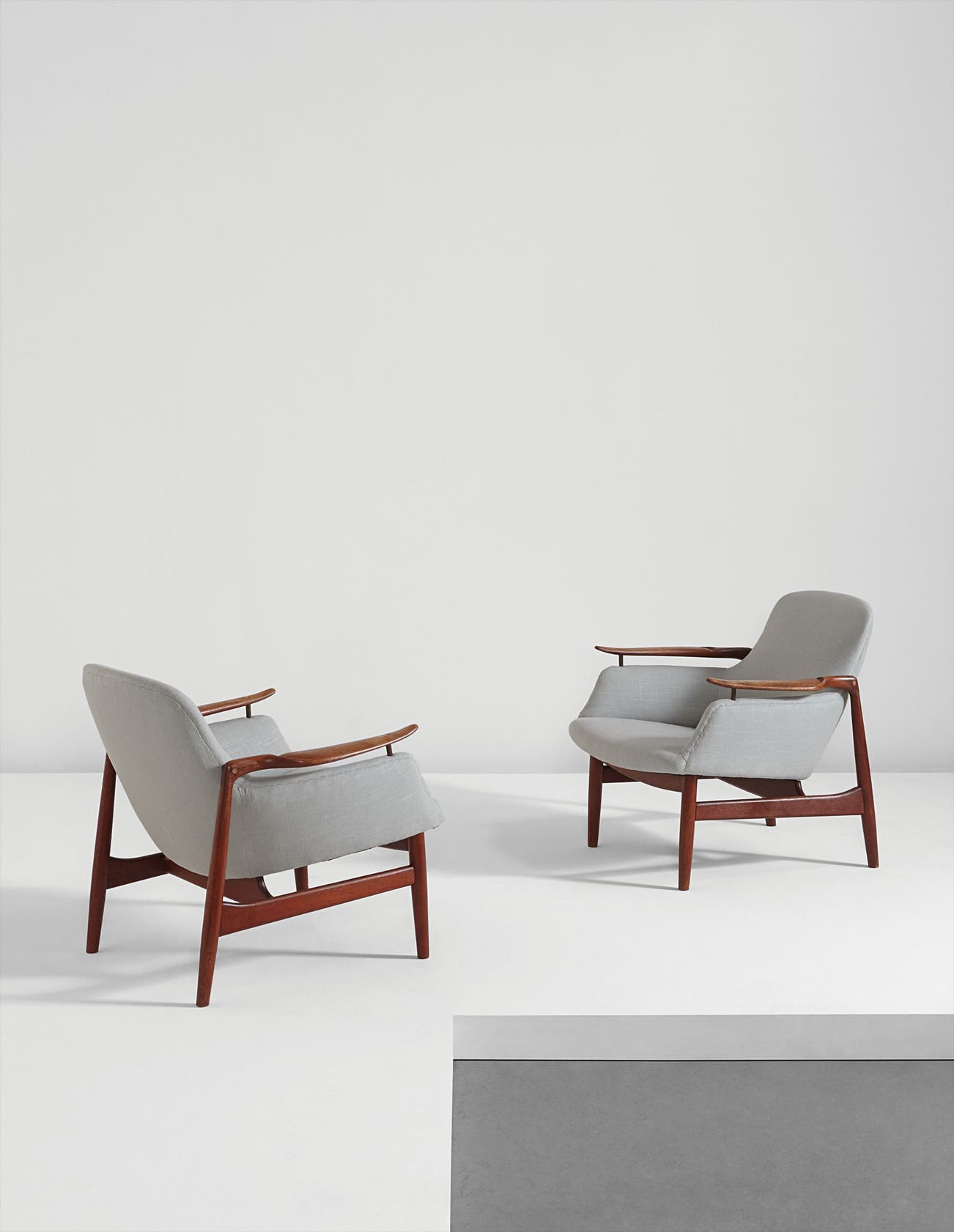 Executed by cabinetmaker Niels Vodder, Copenhagen, Denmark. Underside of each branded with CABINETMAKER NIELS VODDER/COPENHAGEN DENMARK/DESIGN: FINN JUHL.