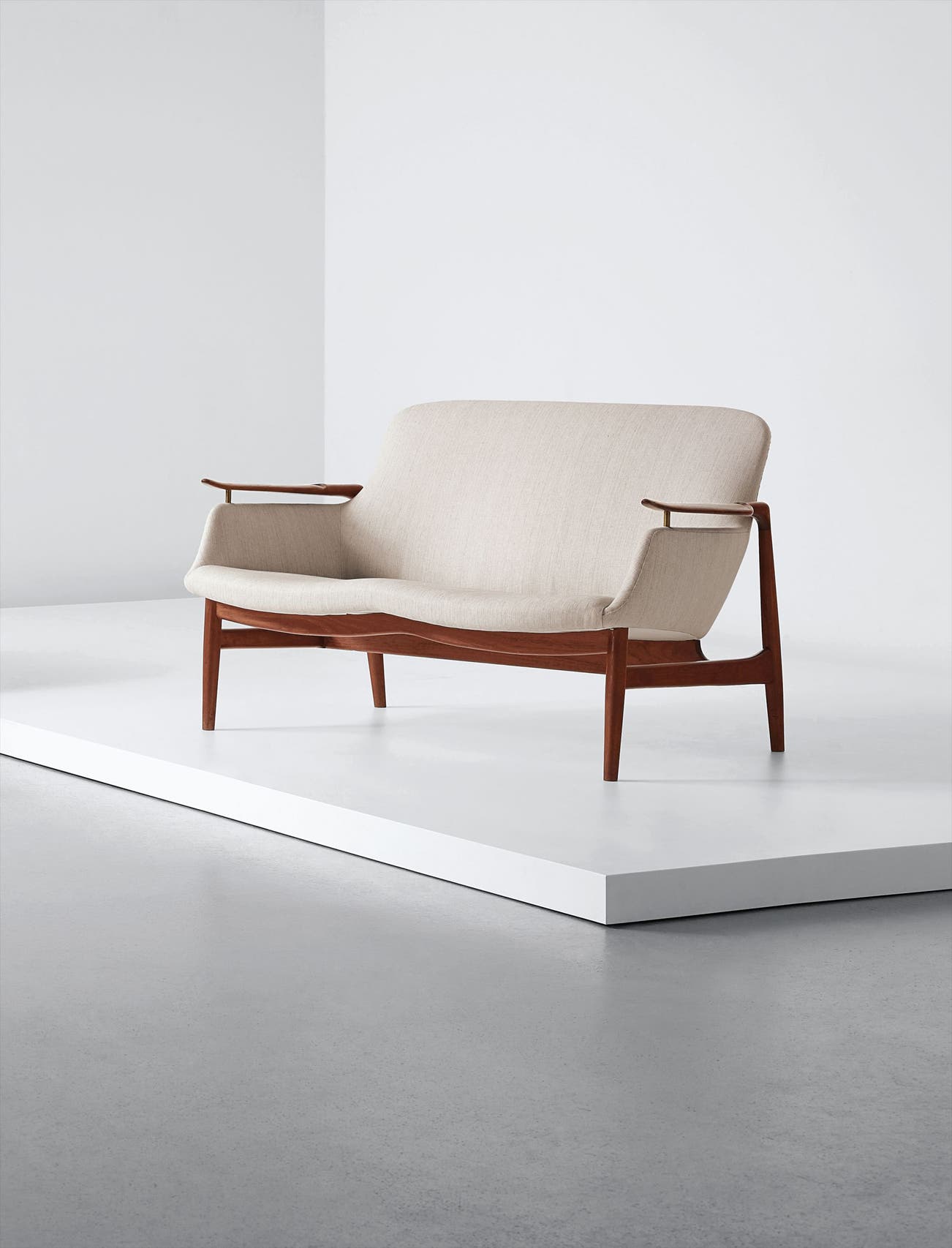 Executed by cabinetmaker Niels Vodder, Copenhagen, Denmark. Underside branded and impressed with CABINETMAKER NIELS VODDER/COPENHAGEN DENMARK/DESIGN: FINN JUHL.