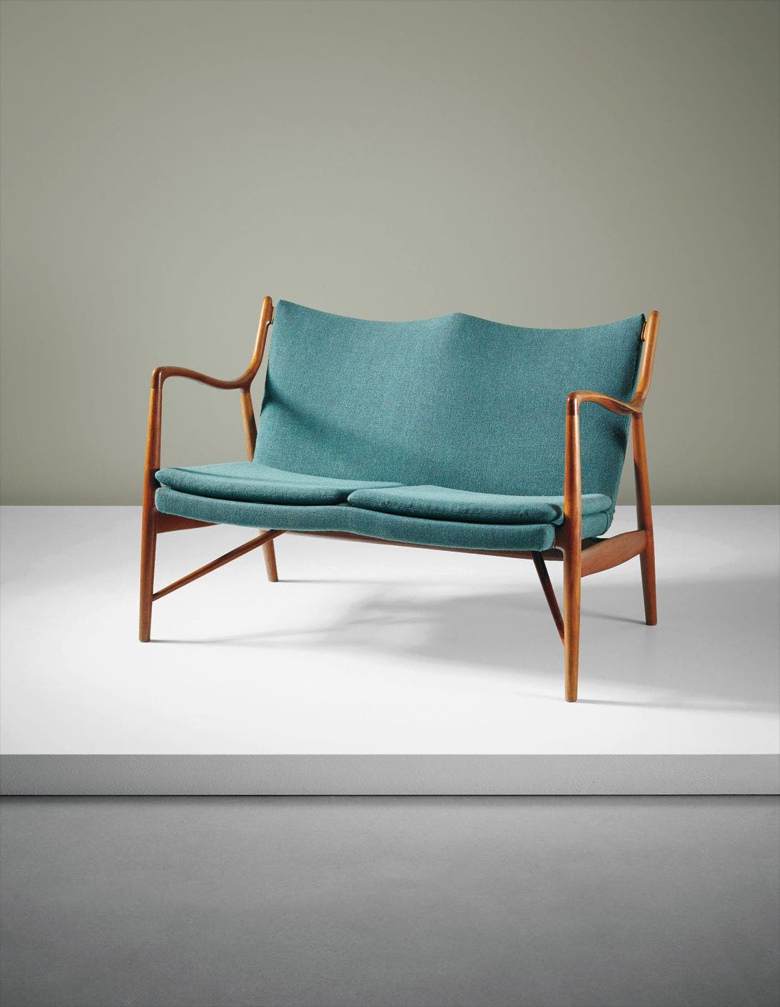 Executed by cabinetmaker Niels Vodder, Copenhagen, Denmark. Underside branded with CABINETMAKER NIELS VODDER/COPENHAGEN DENMARK/DESIGN FINN JUHL.