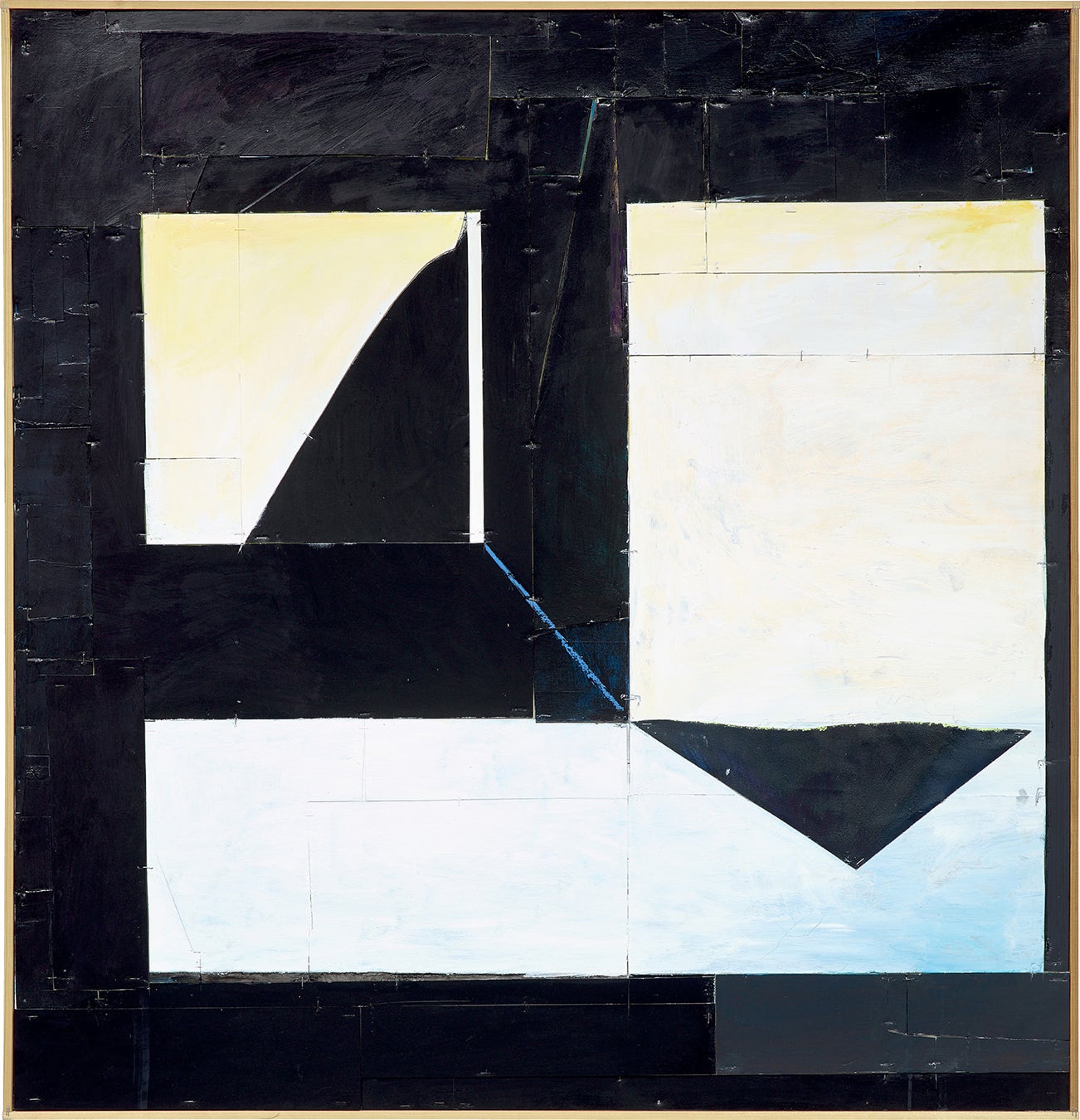 acrylic gel, lacquer, vinyl, cardboard and wood, in artist's frame