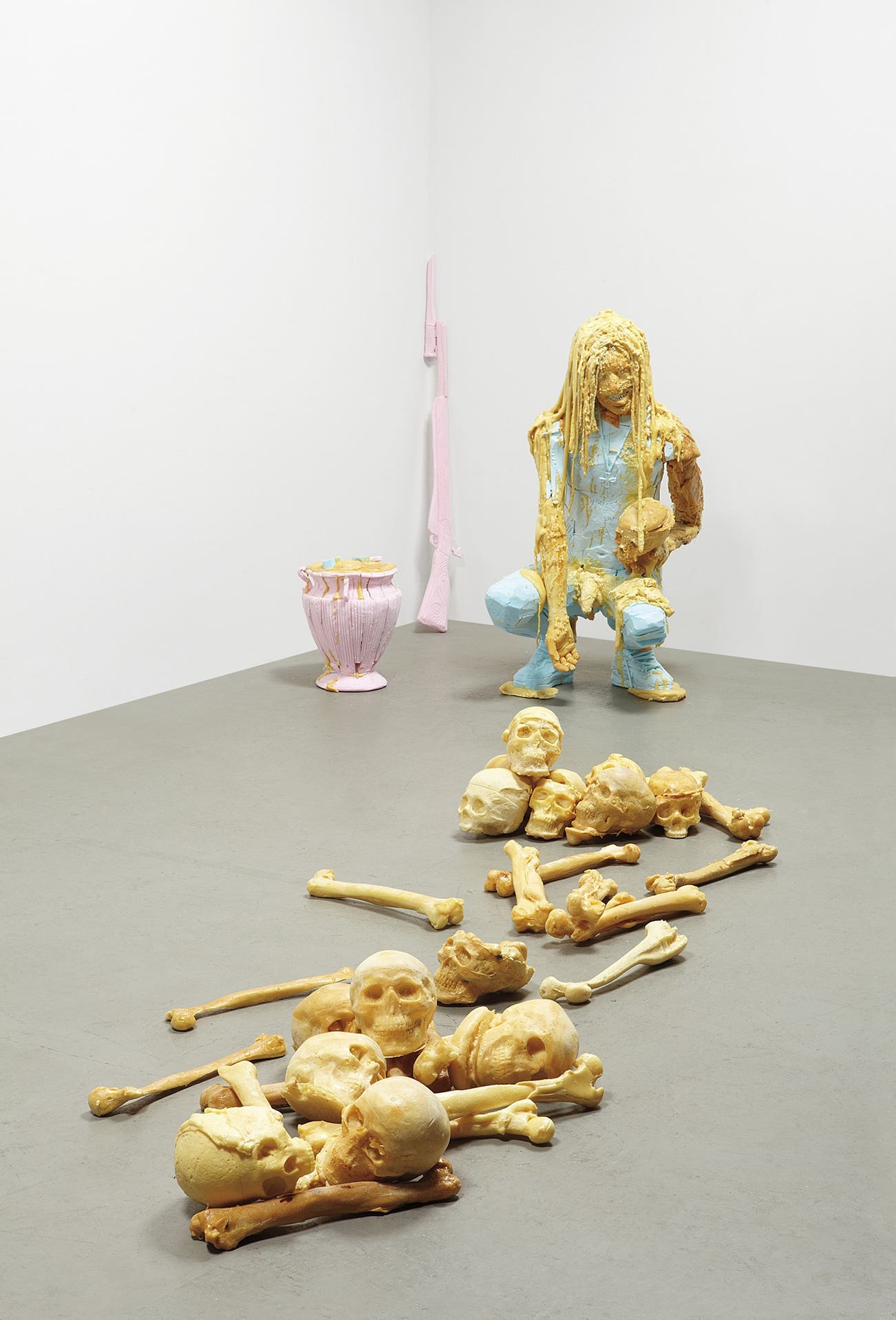 Styrofoam, polyurethane foam and adhesive