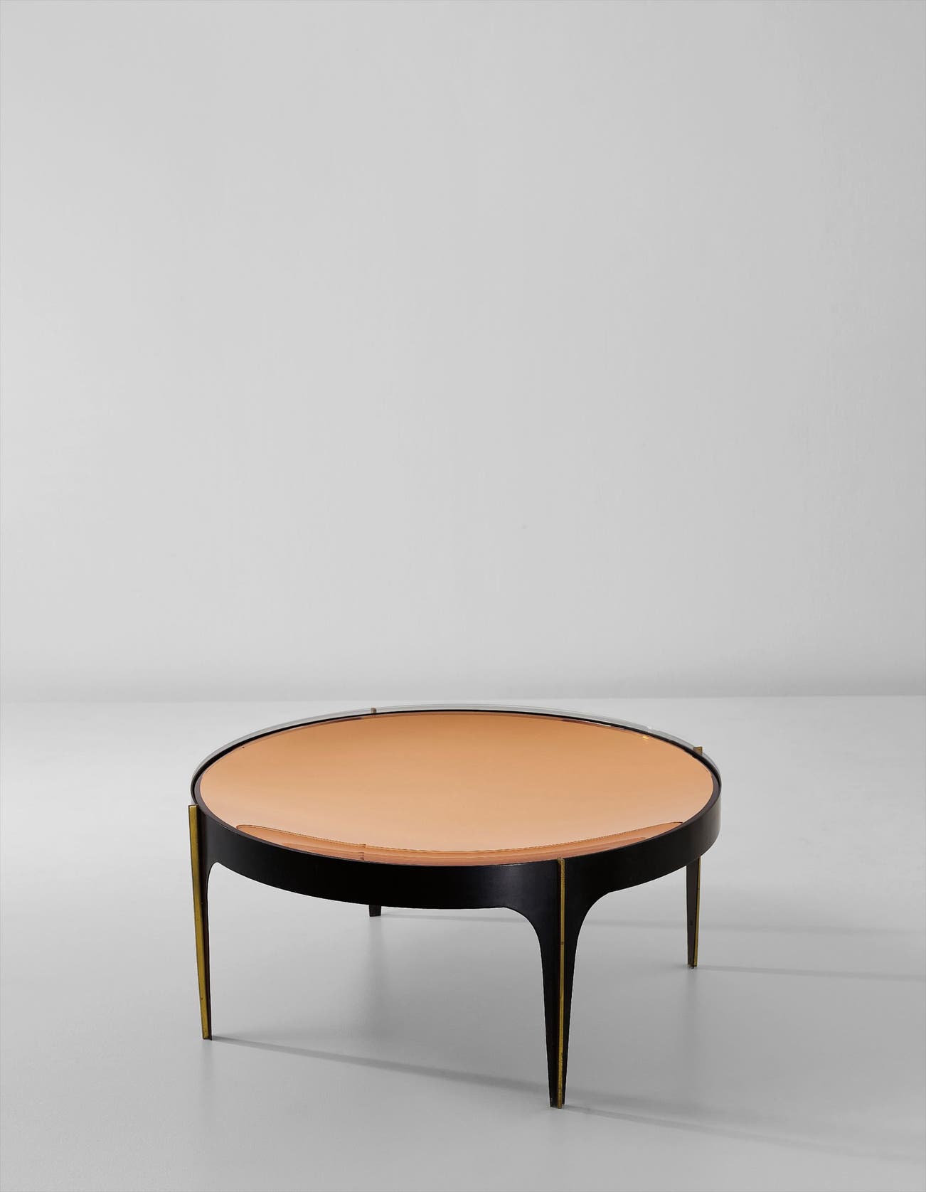 Coloured mirrored convex glass, glass, painted metal, brass.