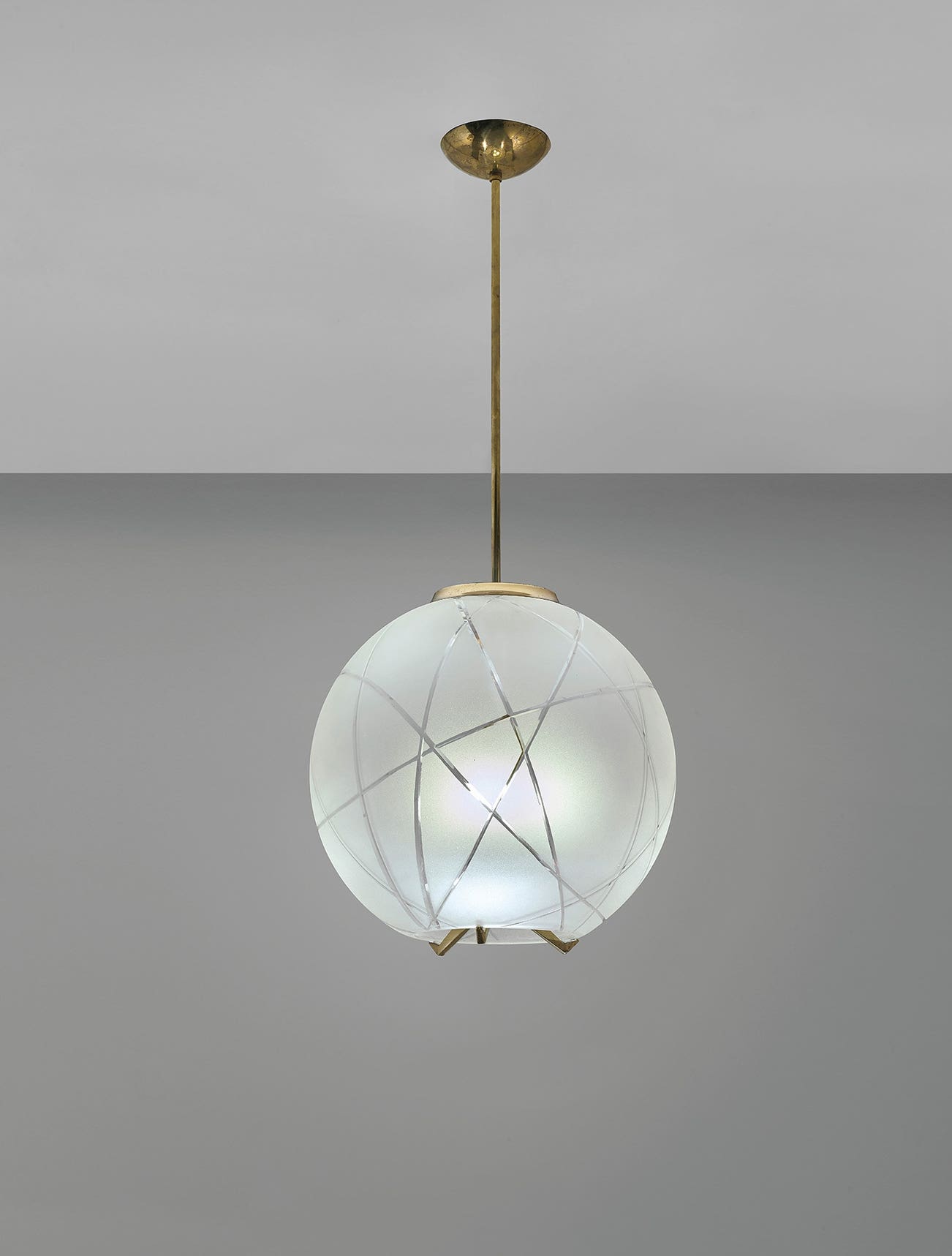 Etched glass, brass, painted aluminium.