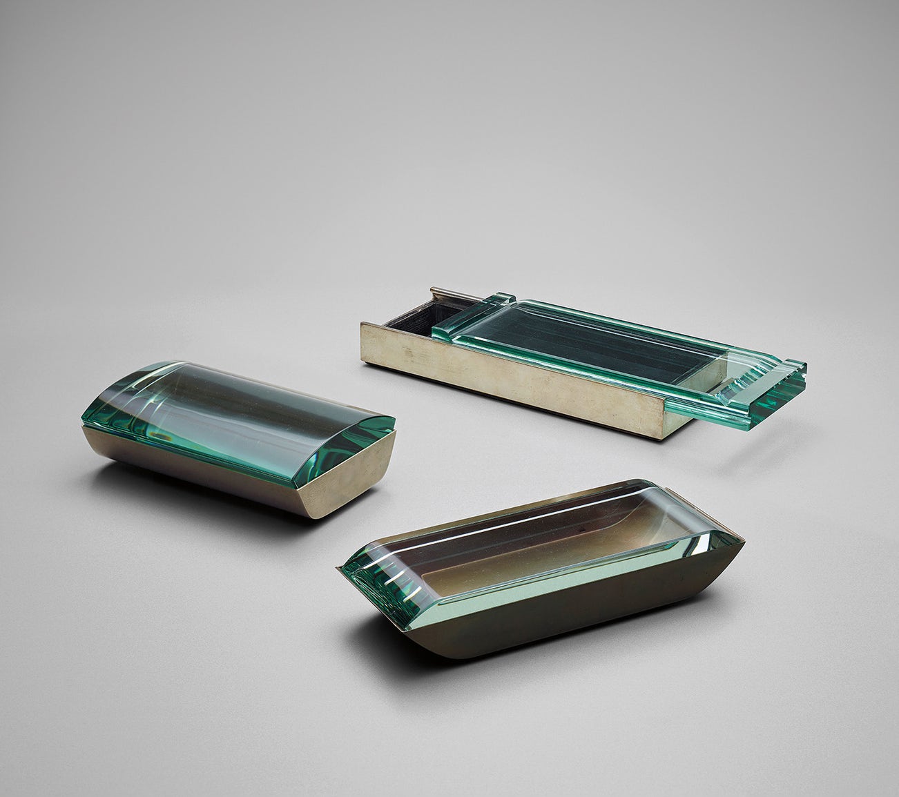 Manufactured by Fontana Arte, Milan, Italy. Largest box acid-etched FONTANA/ITALY and incised with manufacturer's mark FX.
