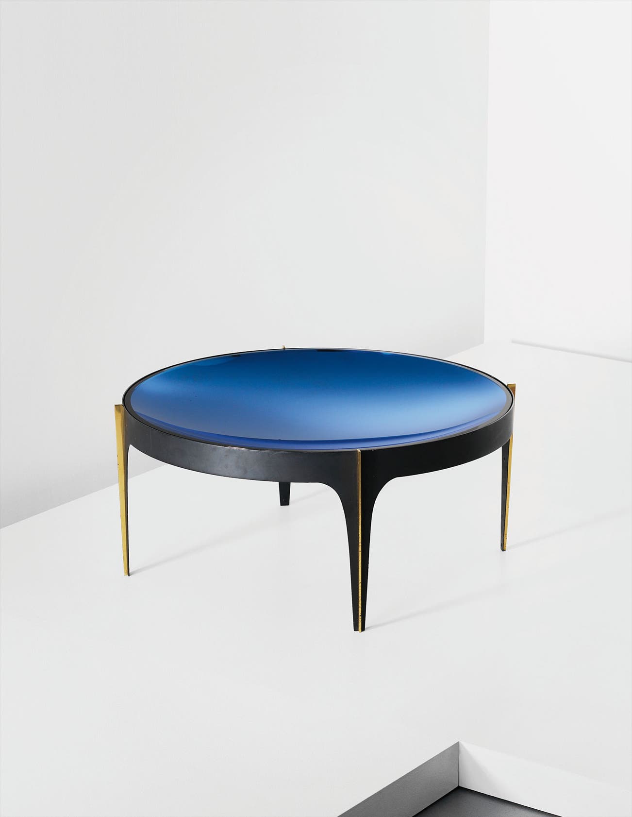 Coloured mirrored convex glass, glass, painted metal, brass.