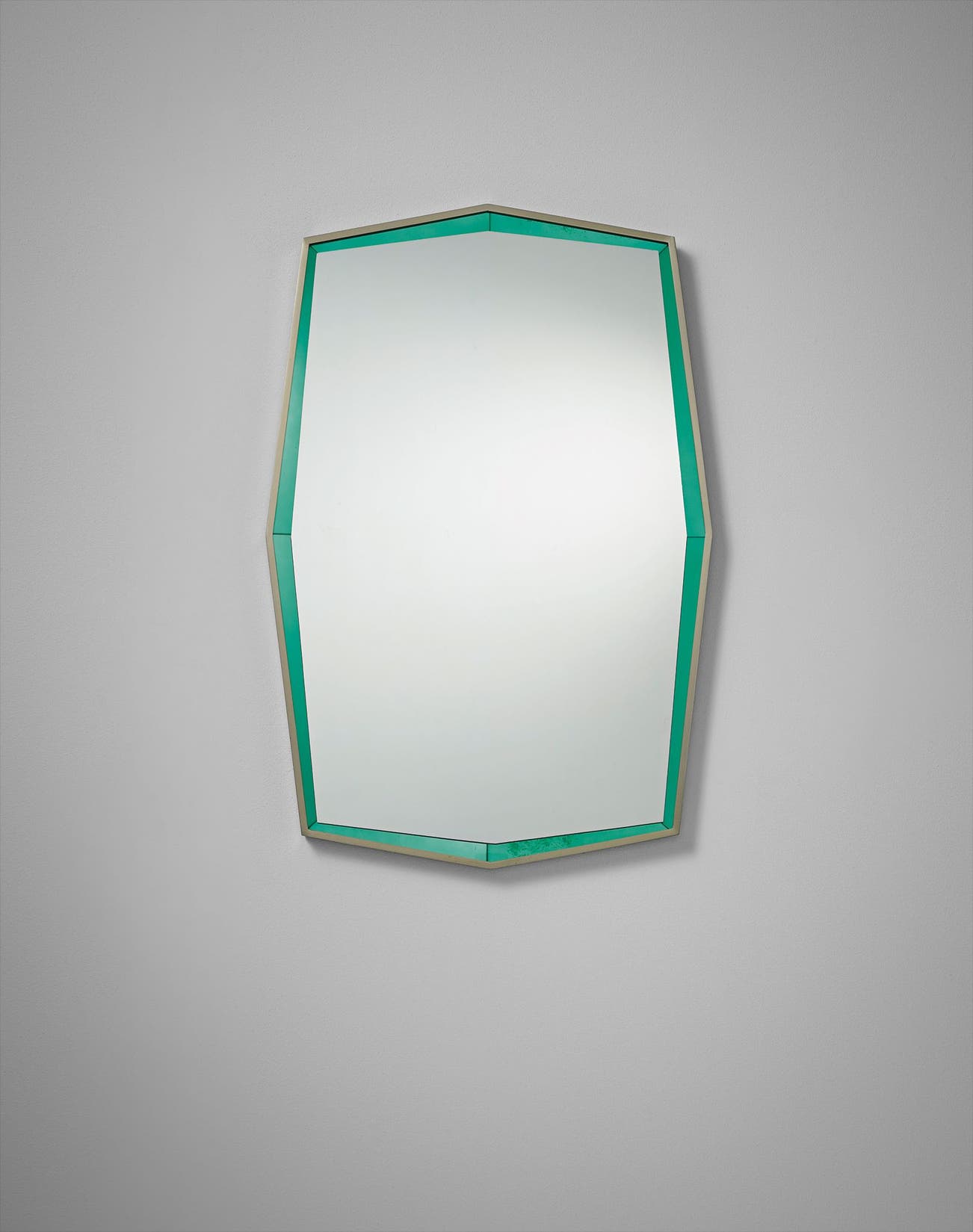 Mirrored glass, coloured mirrored glass, nickel-plated brass.