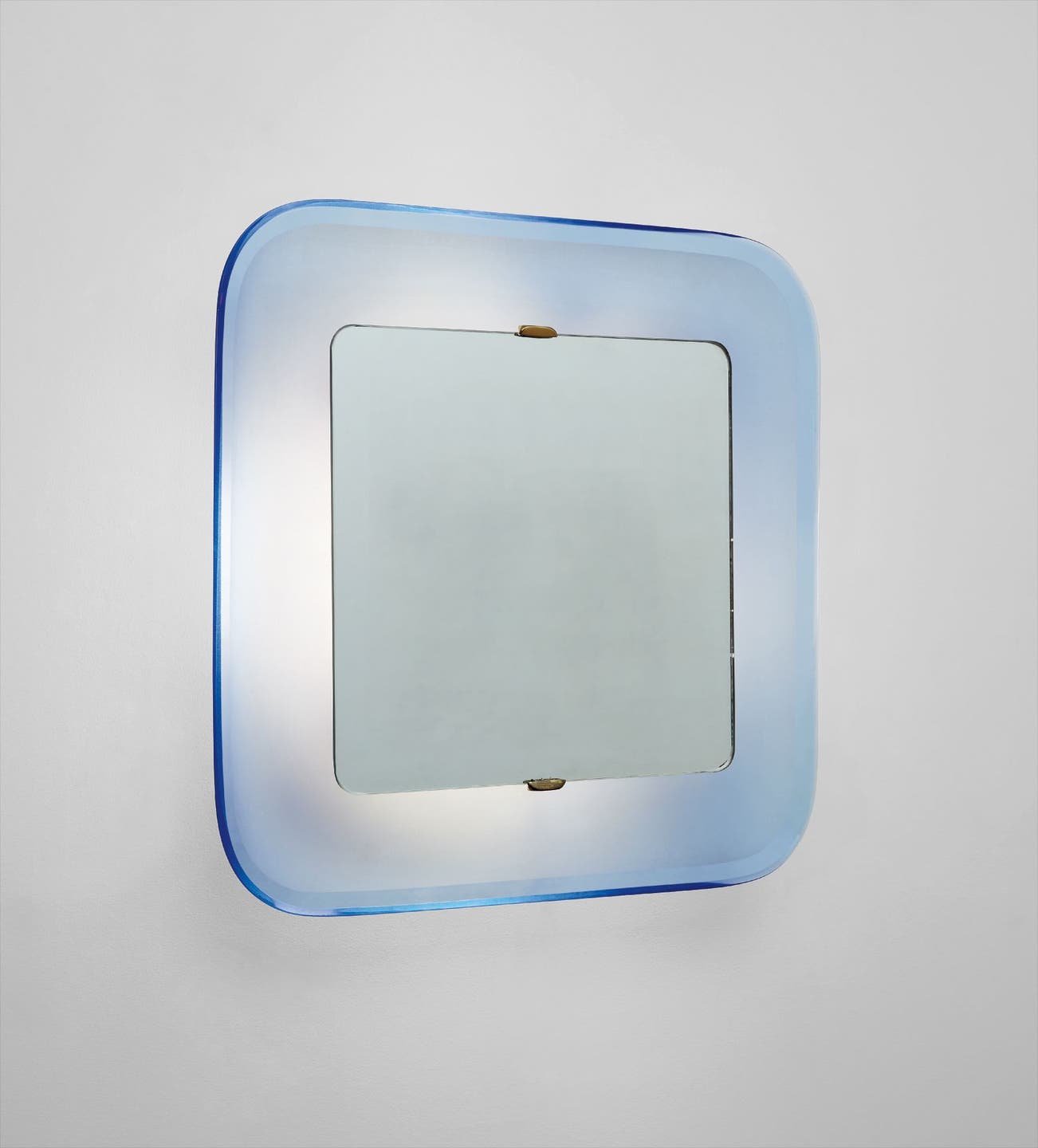 Mirrored glass, glass, painted metal, brass.