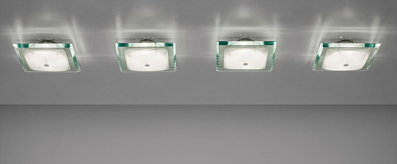 Glass, frosted glass, chromium-plated metal, painted metal.