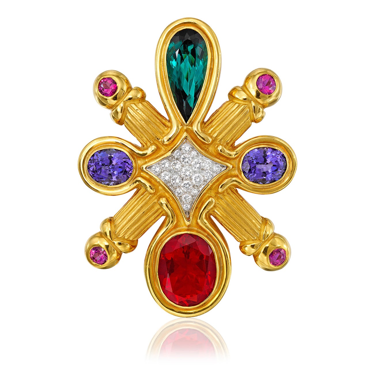 A Multi-Gem, Platinum, and Gold 'Contessa' Brooch/Pendant