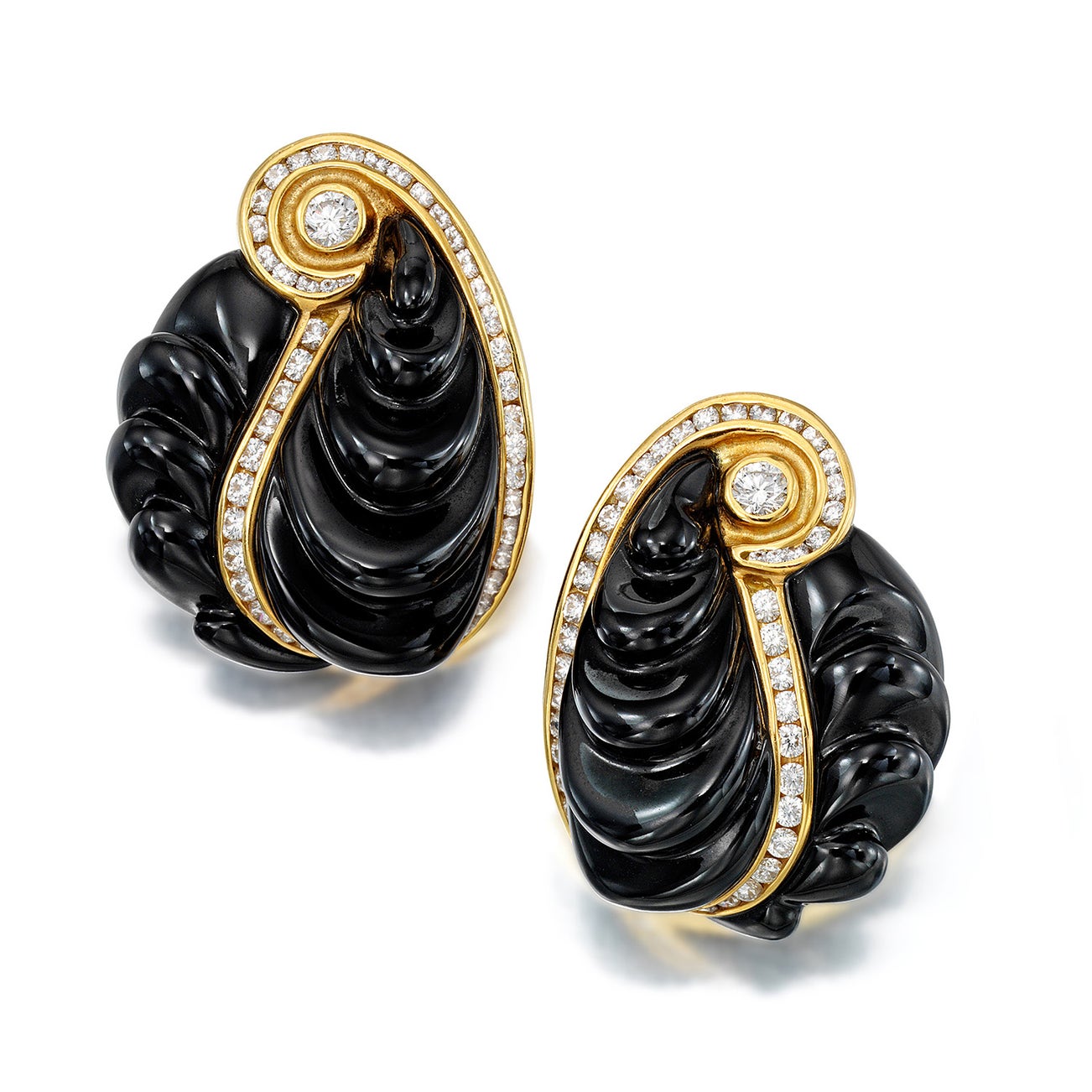 A Pair of Onyx, Diamond, and Gold Earrings