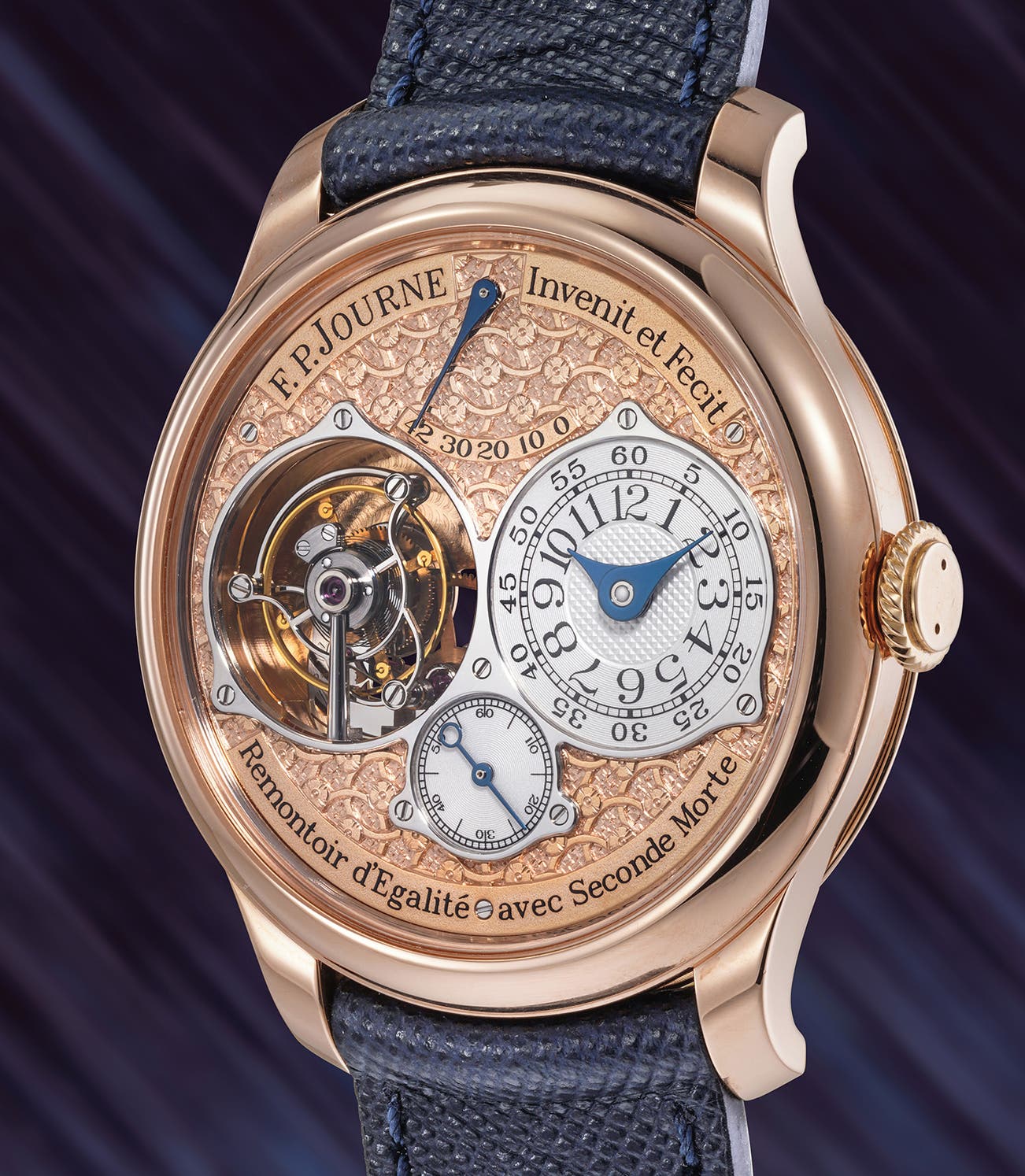 An uber rare and exclusive pink gold tourbillon wristwatch with handcrafted "Regence Circulaire" dial, remontoir d’égalité, deadbeat seconds and power reserve