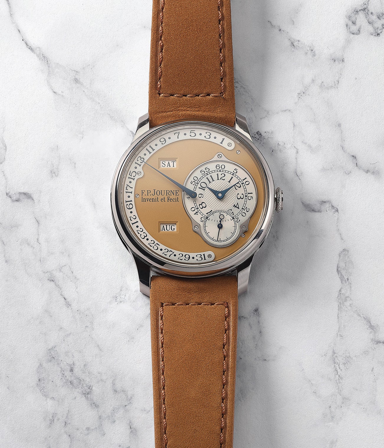 The present watch represents a very rare opportunity to own a limited edition F. P. Journe, which was originally sold as part of a collection of five stainless steel timepieces. Released in 2015, the limited edition of 38 complete sets commemorated the end of the manufacturer’s 38mm diameter case production. When F. P. Journe presented his first wristwatches in 1999, the 38mm case was considered oversized during an era when most brands produced smaller timepieces with 34mm to 36mm sized cases. Today, as tastes have changed, cases measuring 40mm to 42mm in diameter have become the new norm.