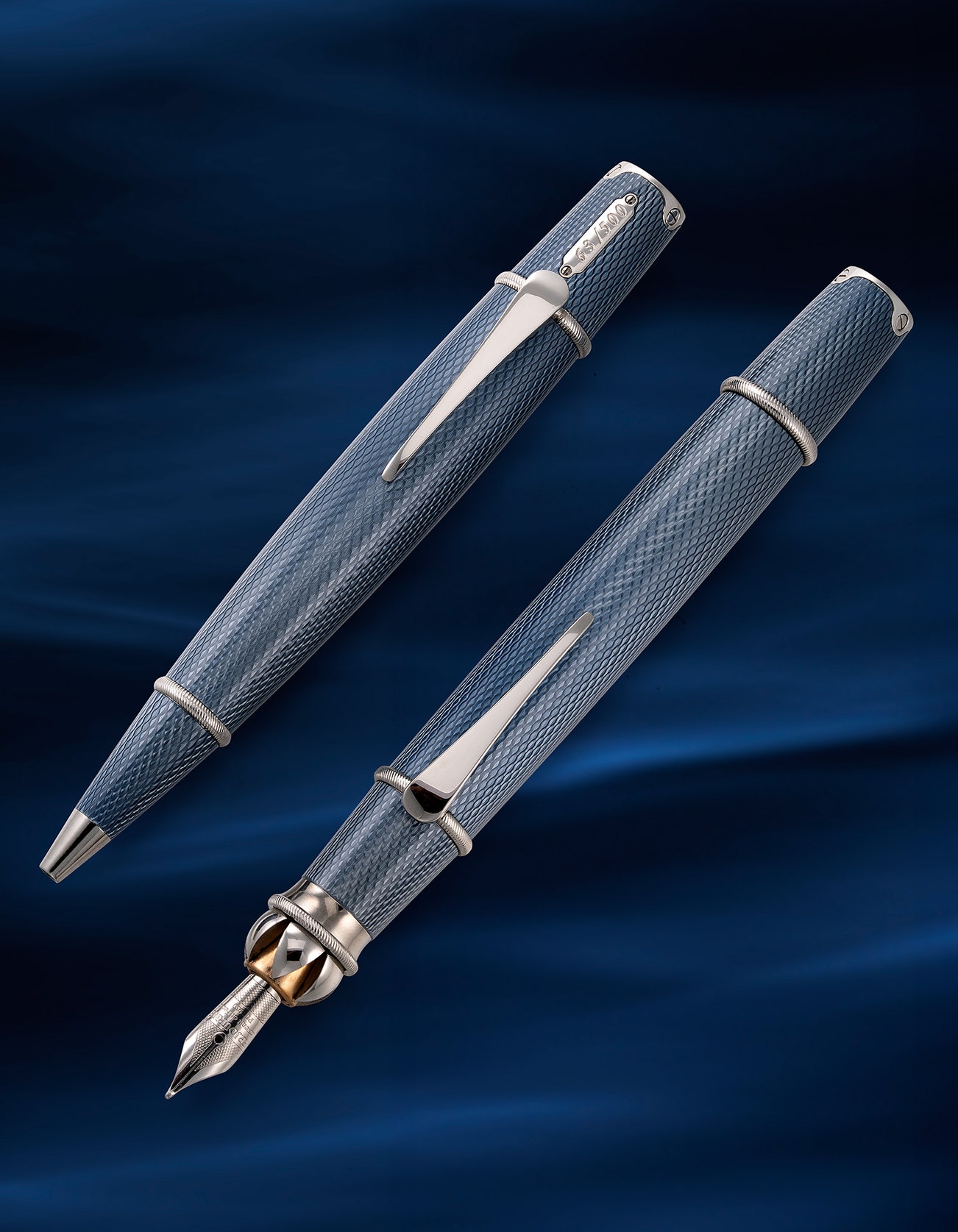 - Hand-crafted in a limited edition of only 500 sets, the present set of writing instruments made in platinum and titanium is numbered 63. The set is comprised of a ballpoint pen and a fountain pen, made entirely by hand with the greatest care and the same attention to detail characteristic of F.P. Journe’s creations. The bodies of both pens are beautifully lacquered in blue and entirely guillochéd by hand in the finest craftsmanship.