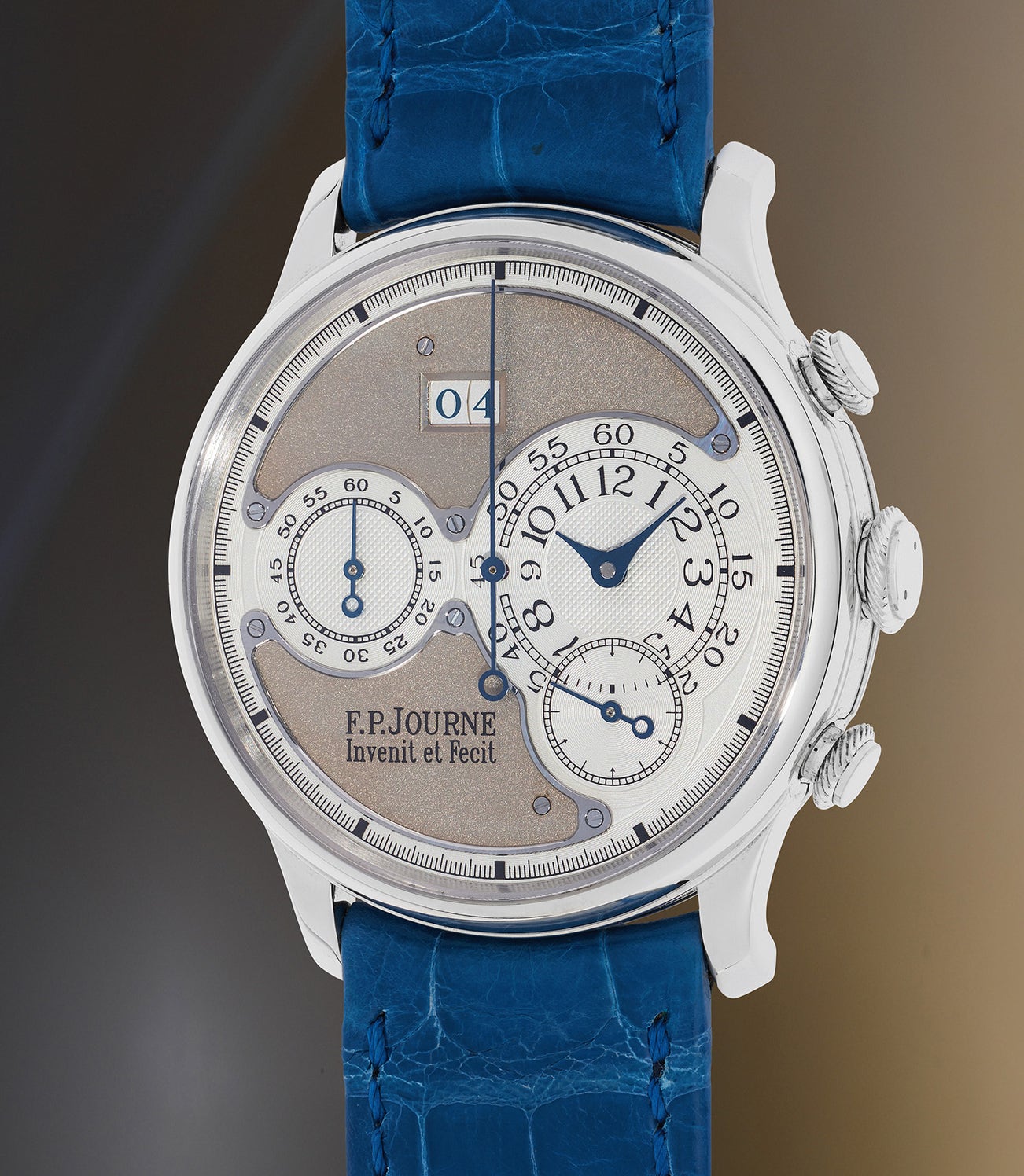 The Octa Chronograph was the world’s first automatic flyback chronometer chronograph with oversized date window. The Octa Chronograph was also the first Journe model to be discontinued, when it was replaced by the Centigraphe Souverain chronograph in 2007.