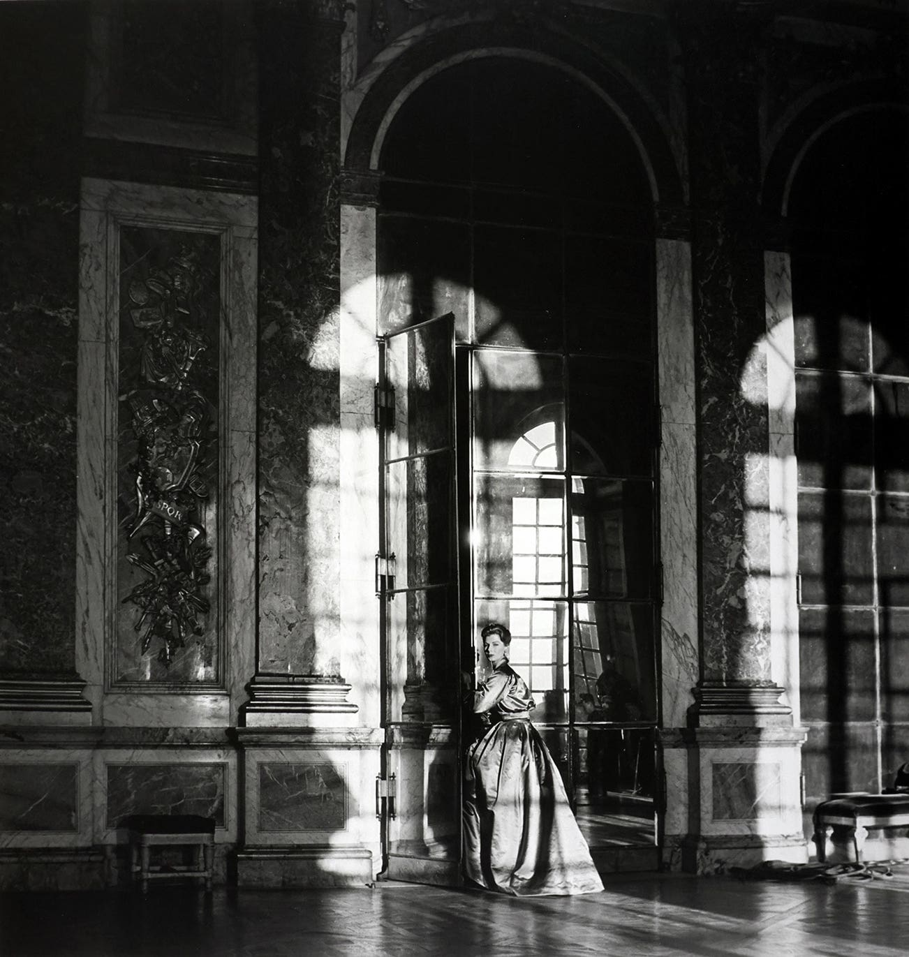 Fiona Campbell, the Palace at Versailles, Paris (Jacques Fath gown)