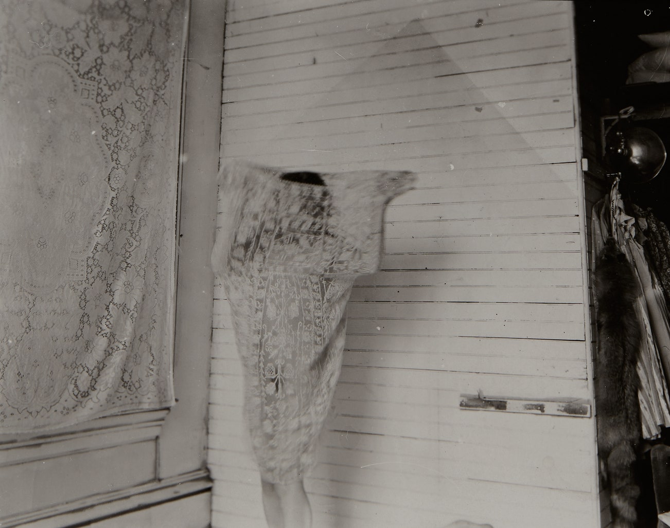 American | B. 1958 D. 1981During her brief 22 years, Francesca Woodman created an extraordinary body of work, exploring gender, selfhood and the body in relation to its surroundings. Woodman often experimented with a slow shutter speed, which slightly blurred and distorted her body as it moved throughout the exposure, creating a haunting, almost ghost-like effect. Her ethereal presence draws our attention to traditional depictions of the body, forms of portraiture and self-portraiture, illuminating the desire for self-preservation against the passing of time.