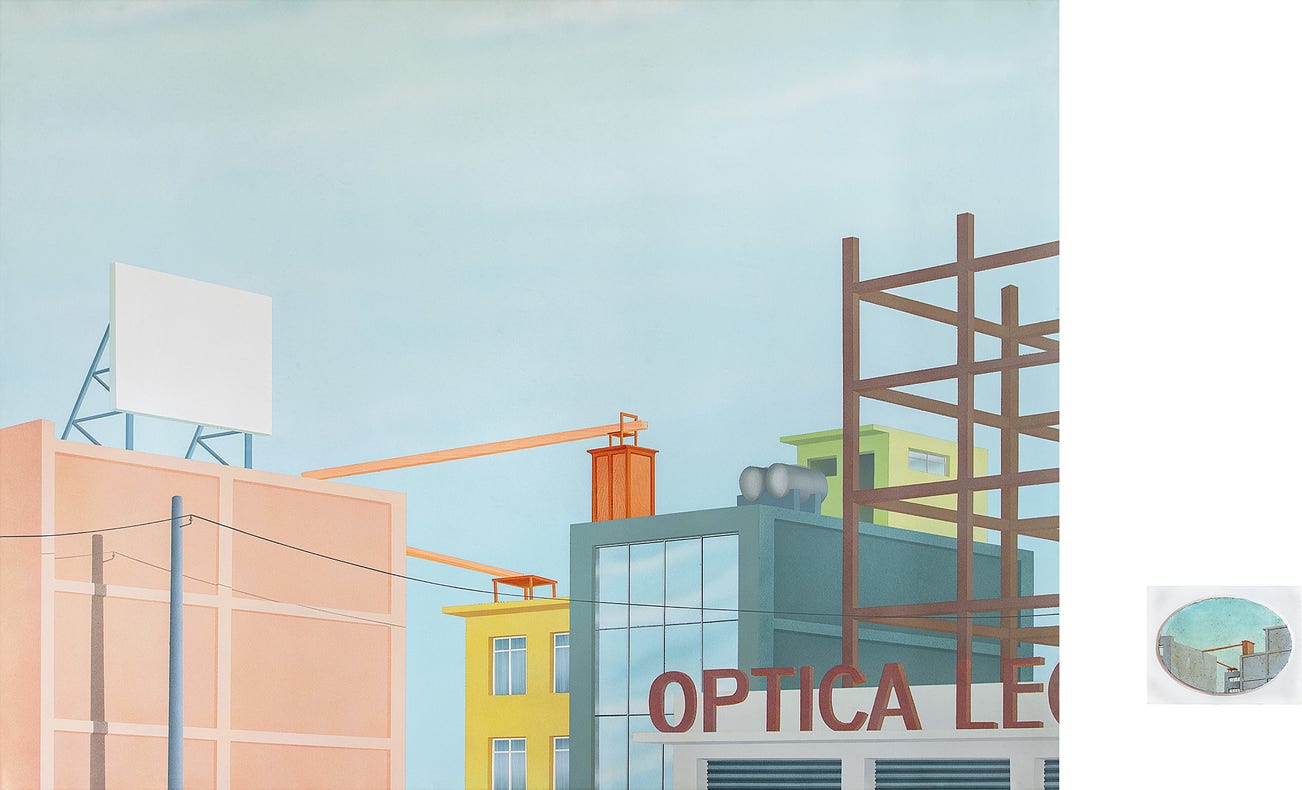 Mrs. Gelman’s passion for art continued throughout her life, resulting in acquisitions like the present lot that stems from Francis Alÿs' prominent ‘Sign Painting Project’, conducted in Mexico between 1993 and 1997. The project, a collaborative exercise between Alÿs and professional billboard-painters, including Juan Garcia, Enrique Huerta and Emilio Rivera, borrowed directly ‘from street advertisements encountered in my neighbourhood in the Centro Histórico. These metal sheets painted by sign painters are propped on sidewalks or hung over storefronts and we are immediately seduced by the communicative power of their iconography' (Francis Alÿs, quoted in, Theodora Vischer, eds., Francis Alÿs: Sign Painting Project with Juan García, Emilio Rivera, Enrique Huerta, 2011, p.7). Alÿs brought the billboard-painters, known as rotulistas, some of his small-format oil paintings and asked them if they would copy and expand his motifs. These works explore the themes of authorship and originality. As an underlying purpose of the collaborative effort, Alÿs sought to challenge the idea of the painting as a unique object.