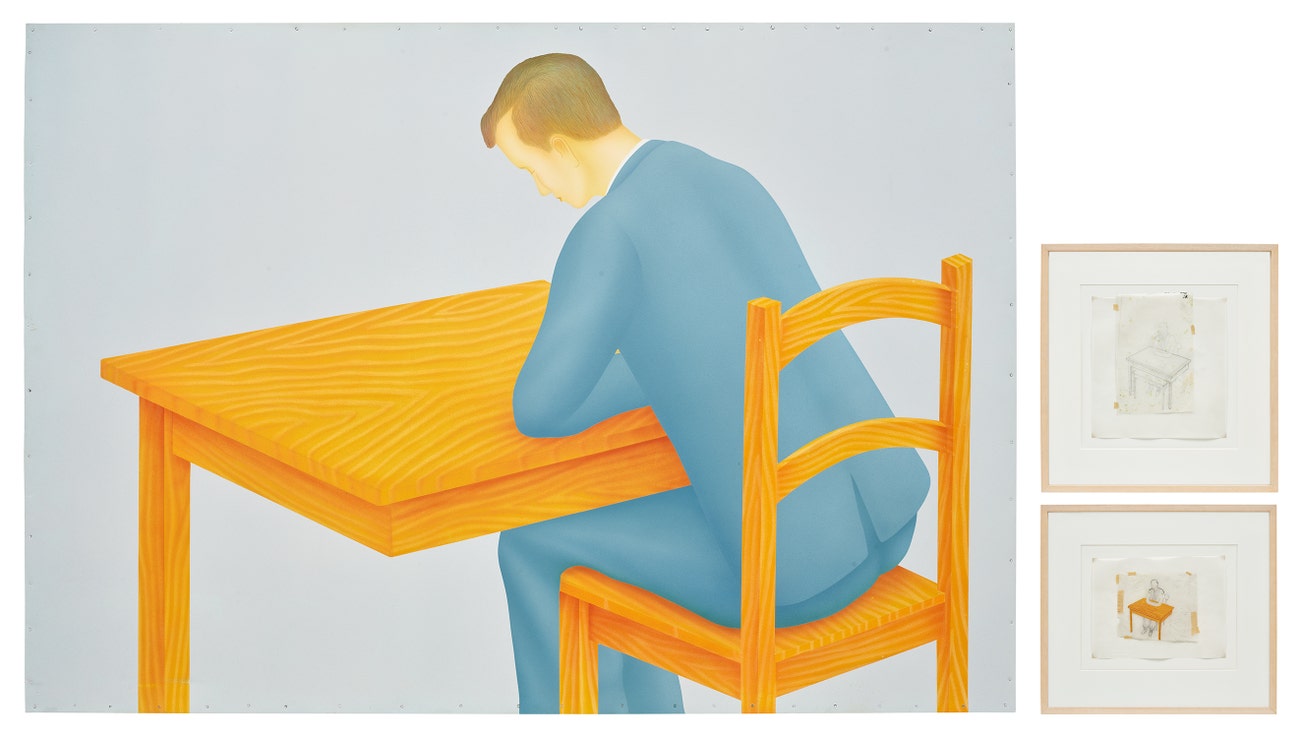 Belgian / Mexican | 1959Born in Belgium, Francis Alÿs traveled to Mexico in 1986 as part of a French program to assist in the aftermath of the tragic 1985 earthquake, and has lived there ever since. Throughout his career, the artist has analyzed facets of everyday urban life using a variety of media including video, drawing, installation and public action. Sign Painting Project (1993-'97) is a prime example of the artist's interest in the sprawling urbanization of Mexico City. In this early series, Alÿs drew inspiration from professional Mexican sign painters (rotúlistas) who painted large billboard advertisements throughout the city. In response to these large colorful compositions, Alÿs employed a similar style in creating small-scale paintings of familiar objects and places. Alÿs asked various rotúlistas to copy and enlarge his paintings, displaying his work and that of the rotúlista side-by-side. This series, like many of Alÿs' other works, illustrates the artist's concerns with such themes as collaboration, banality and originality.