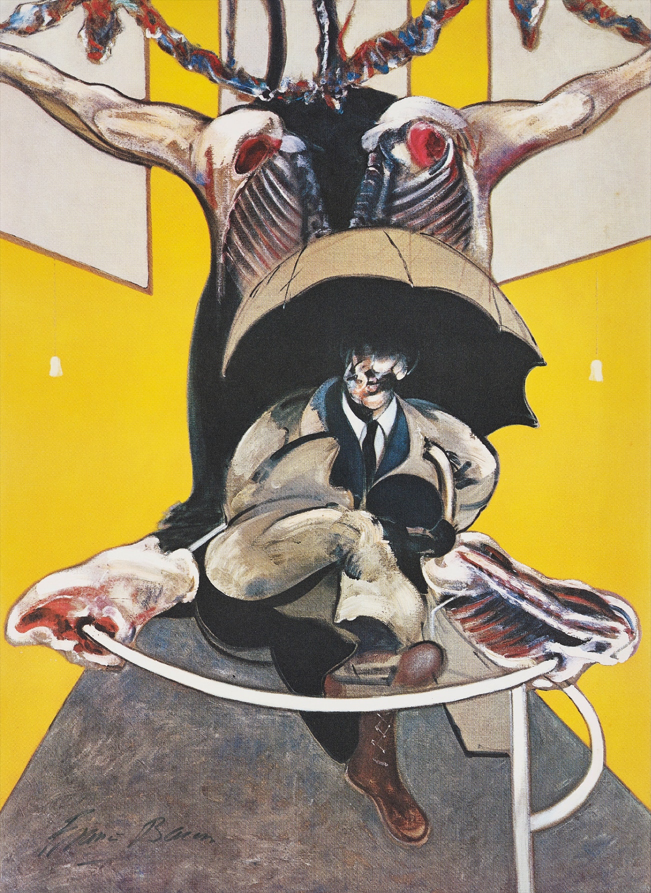 In conversation with yet challenging the conventions of Modern art, Bacon was known for his triptychs brutalizing formalist truths, particularly Three Studies for Figures at the Base of a Crucifixion, which Bacon debuted in London in 1944, and Three Studies of Lucian Freud, which became famous when it set the record for most expensive work of art at auction at the time it sold in 2013.