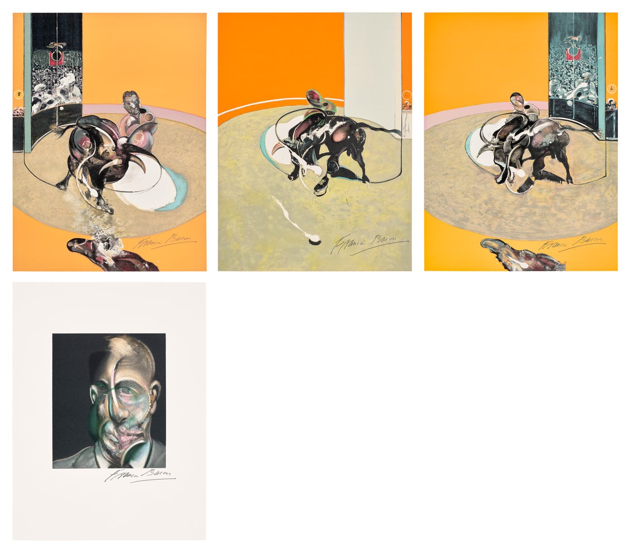 In conversation with yet challenging the conventions of Modern art, Bacon was known for his triptychs brutalizing formalist truths, particularly Three Studies for Figures at the Base of a Crucifixion, which Bacon debuted in London in 1944, and Three Studies of Lucian Freud, which became famous when it set the record for most expensive work of art at auction at the time it sold in 2013.