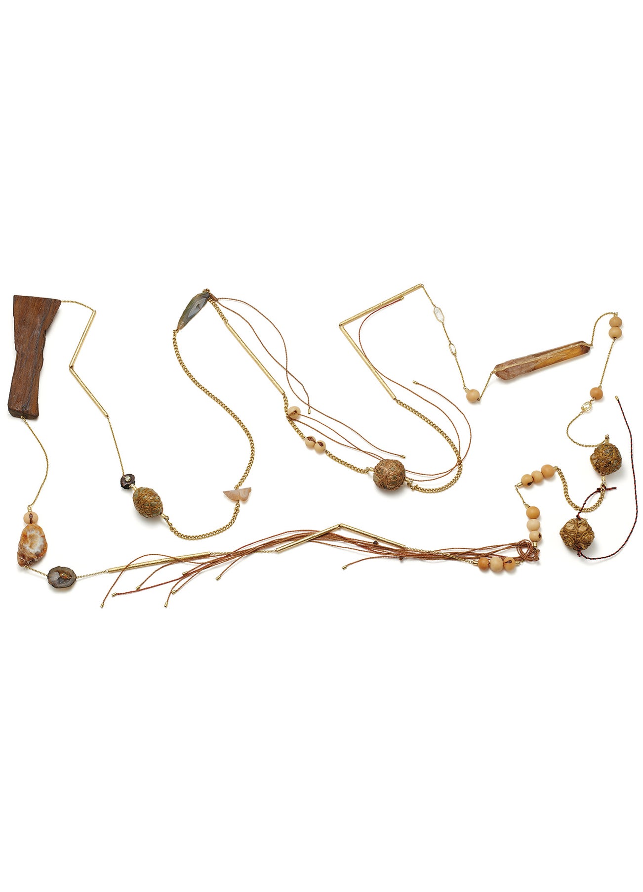 A Diamond, Colored Diamond, Quartz, Wood and Gold Necklace