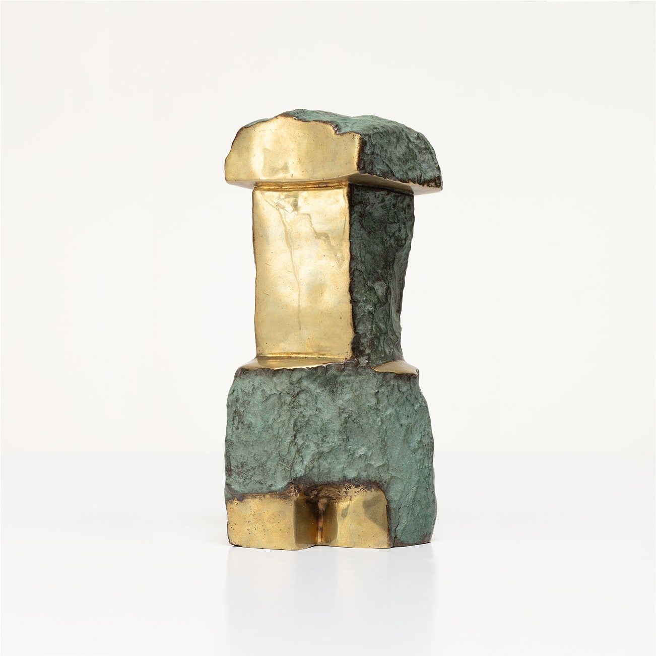 polished bronze with green patina