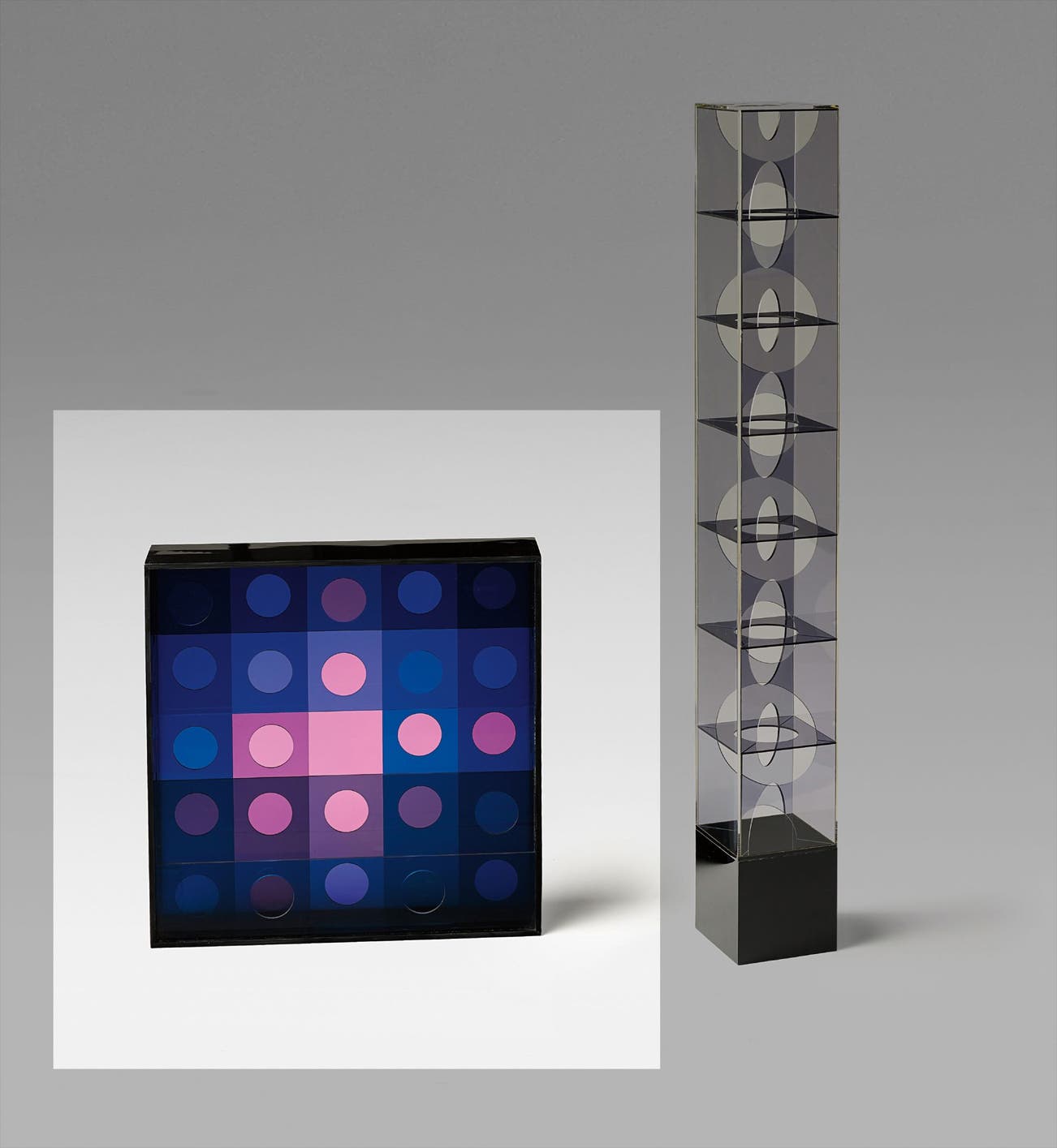 with incised signature, title, date '1967', and numbering '36/100' on a clear plaque affixed to the reverse, published by Éditions Denise René, Paris, contained in the original wood crate.