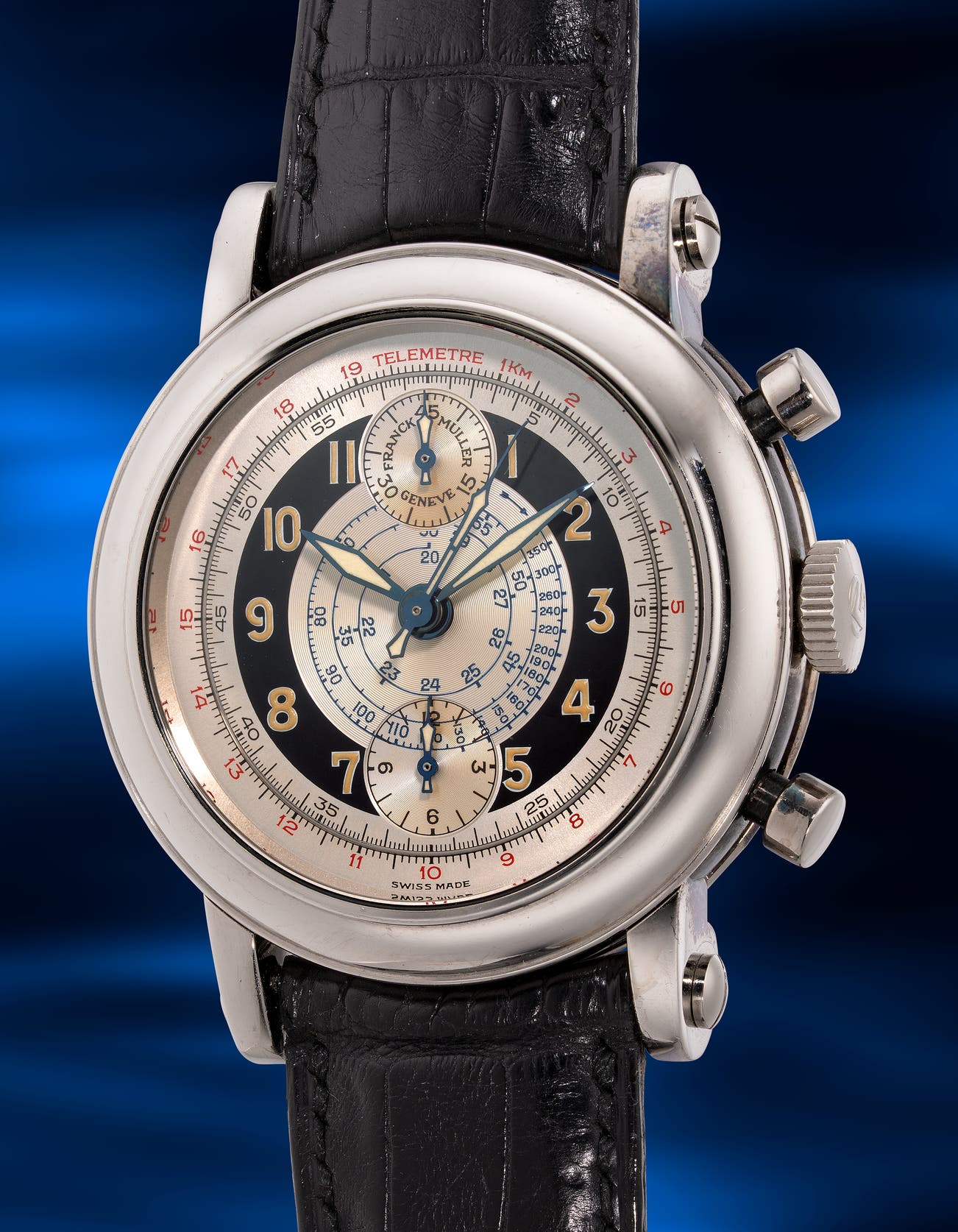 • Inside the 18K white gold case, beneath a snap-on caseback, lies the iconic FM7000 calibre, complete with a signed platinum rotor. Paired with a black crocodile strap, the present example is offered in excellent condition. The beautiful patina of the caseband on the right side adds a subtle historical charm, making it a truly appealing piece for collectors.