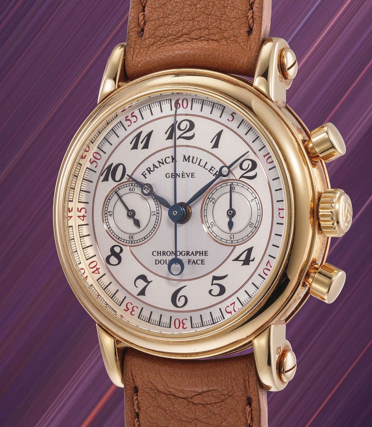 Powered by the manual cal. 1872, the legendary movement has powered many other iconic Franck Muller timepieces. While the Double Face Chronograph model was in production until 2010 with various dial designs, materials and case sizes ranging from 37mm to 44mm, it is no wonder that connoisseurs of the firm adore this model due to its rarity, craftsmanship and diversity. Notably, the revived Franck Muller 30th Anniversary 'Tribute' Double Sided Rattrapante Chronograph is evidently inspired by the present timepiece, with an additional split-seconds module.