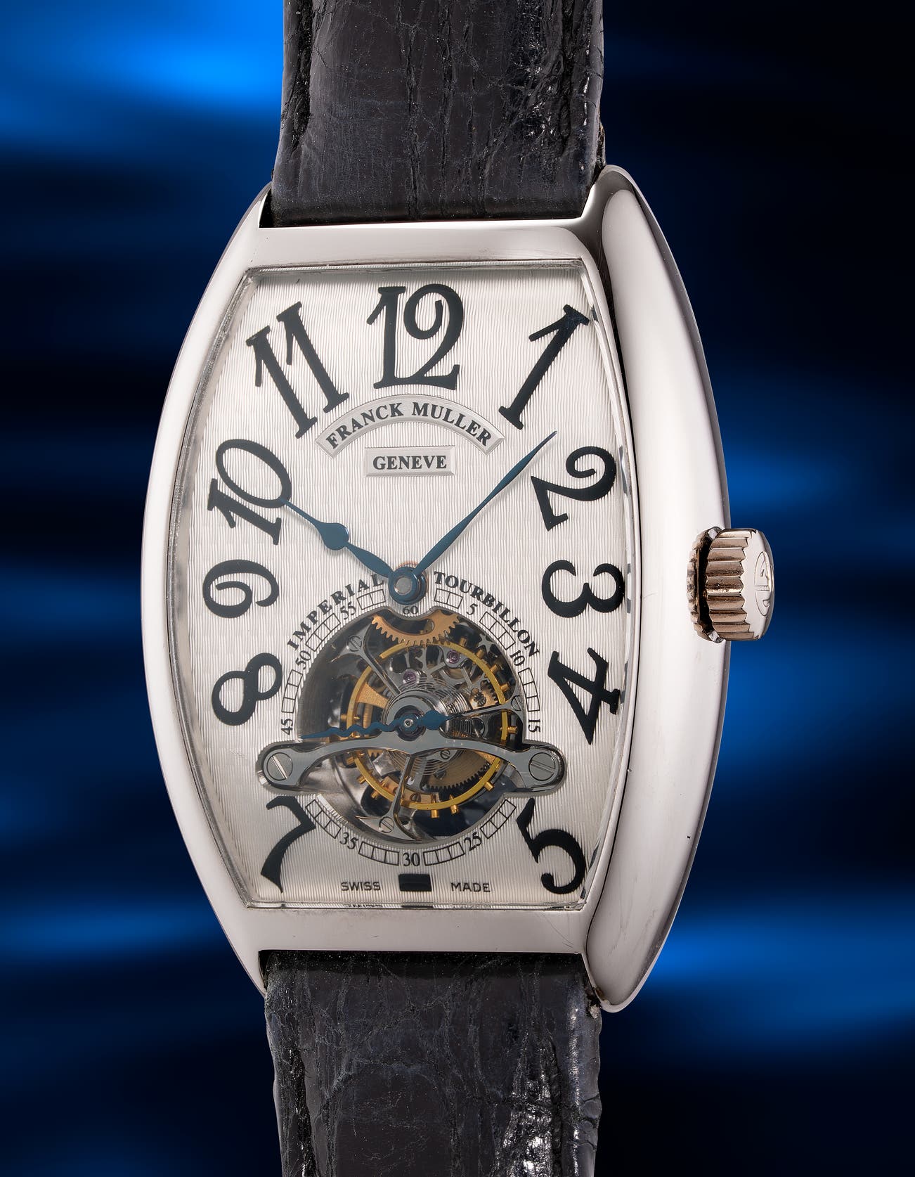 - Complete with its original certificate and presentation box, this timepiece is a rare find on the market and exemplifies the exceptional craftsmanship of Franck Muller.