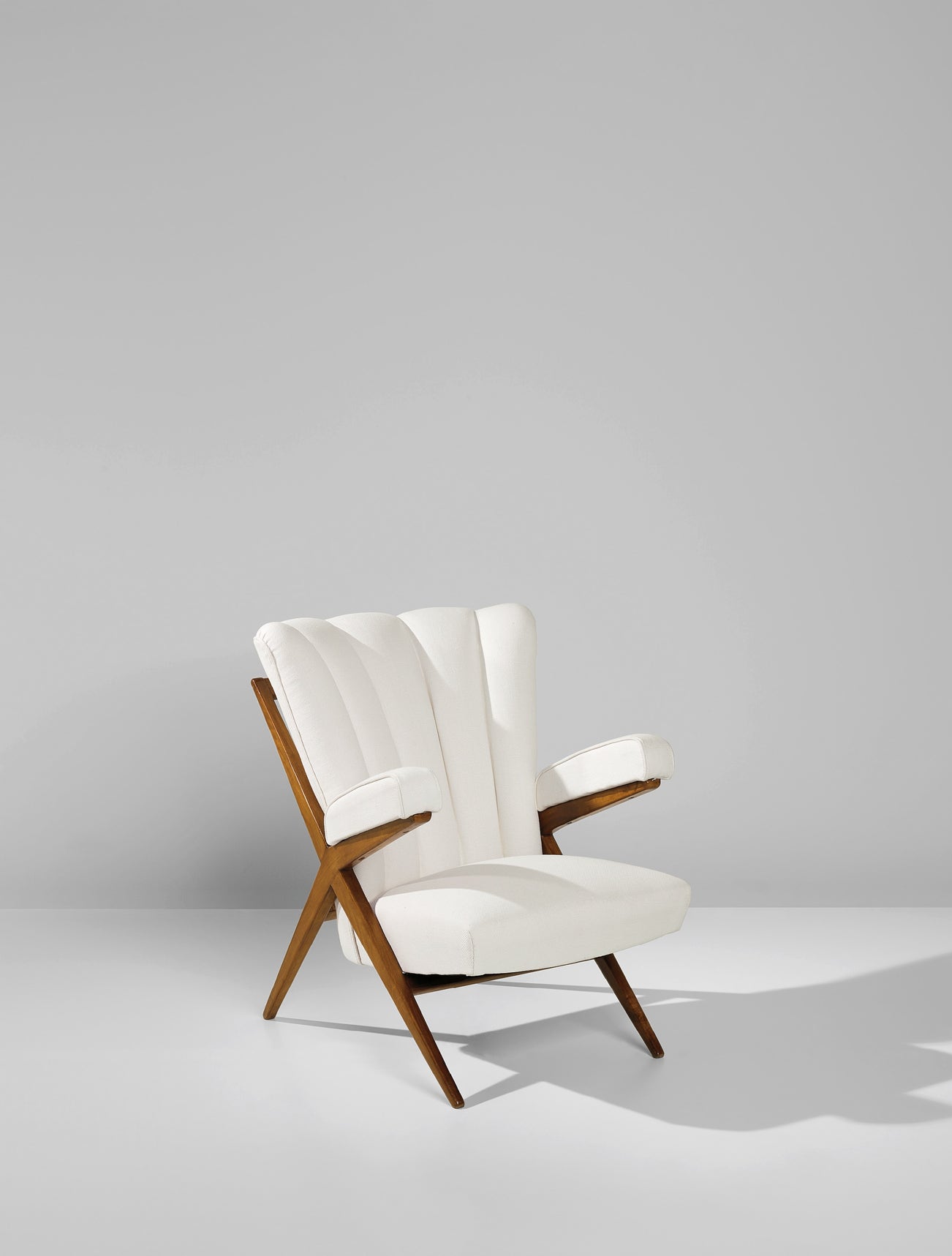 The following lots comprise three armchairs conceived by three distinctive architects and designers active in Italy between the 1920s and 1970s. Albeit all originating from the same stylistic heritage of Italian design of the 1940s, each of the armchairs illustrate varied aesthetic influences and represent three personal approaches to the same subject.