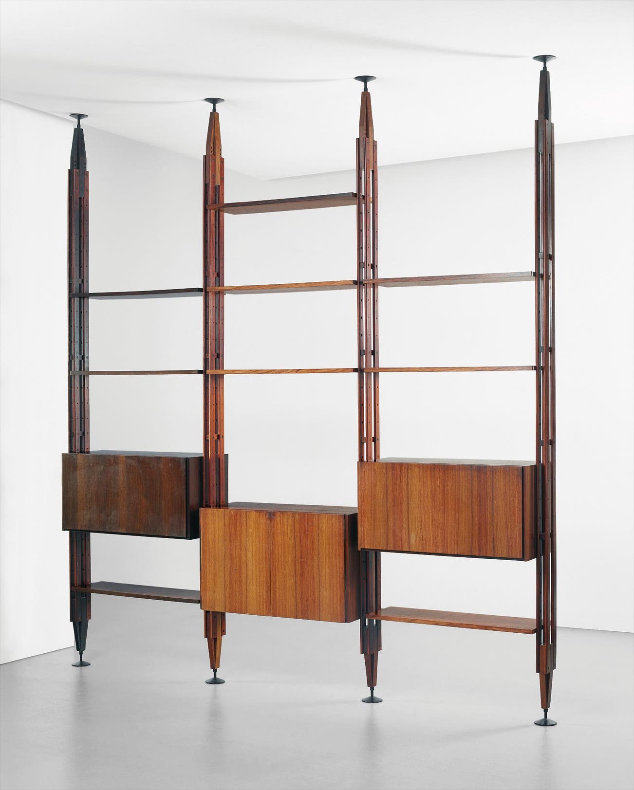 East Indian rosewood-veneered wood, East Indian rosewood, painted metal.