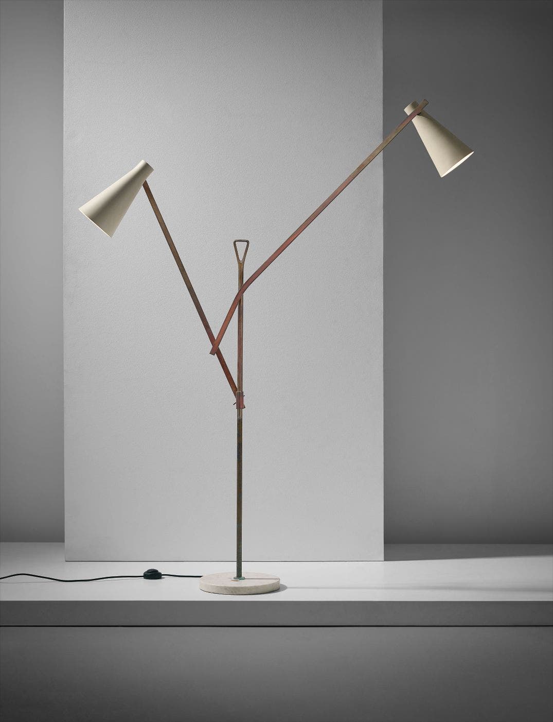 Painted aluminium, tubular brass, brass, marble.