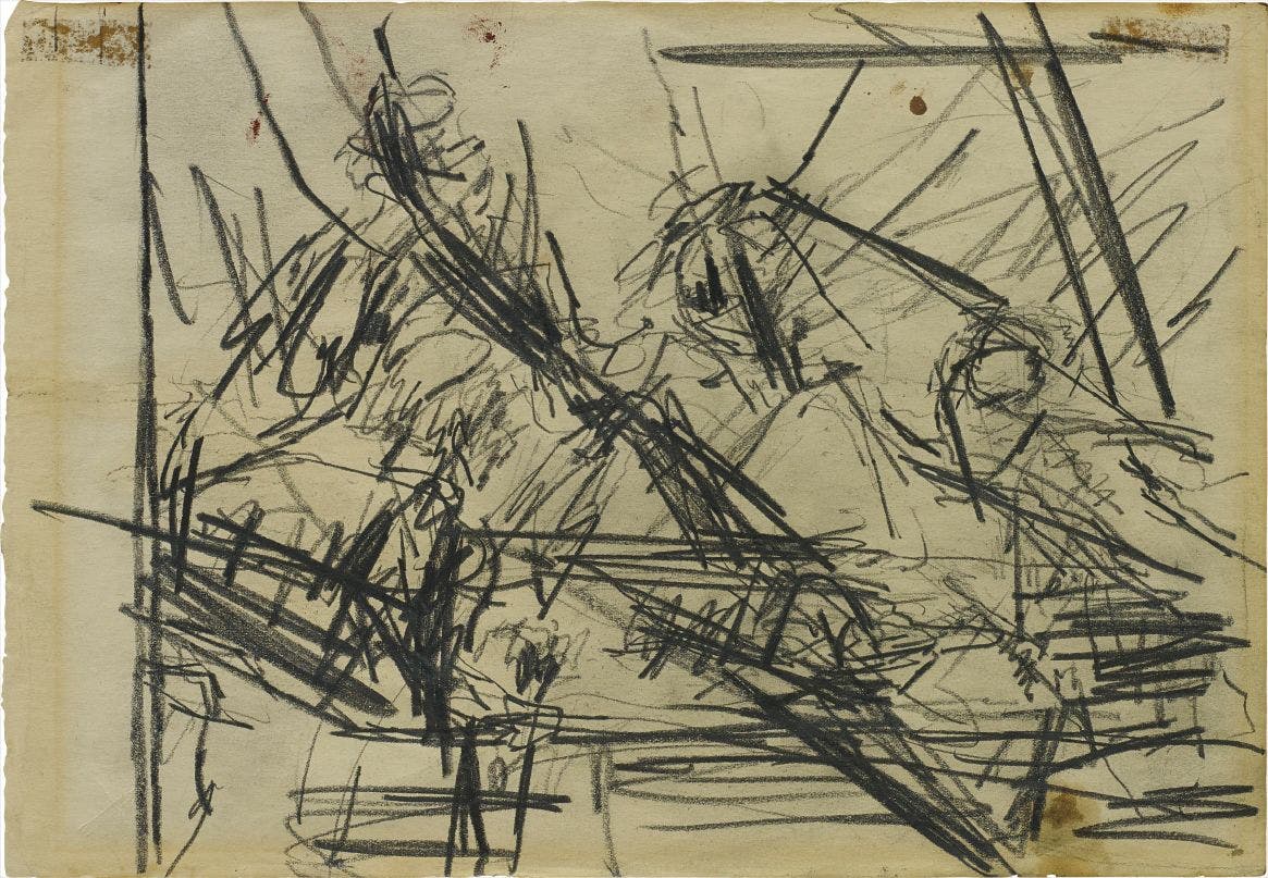 pencil and black chalk on paper