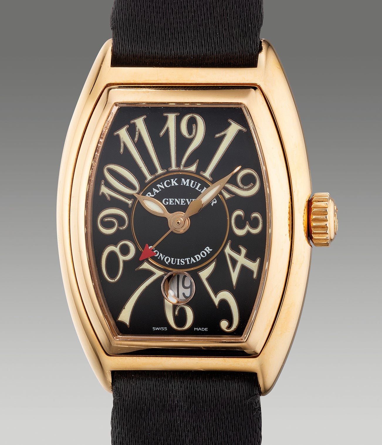 Accompanied by Franck Muller certificate dated 23rd December 2000 stamped Time Watches Distribution s.r.l., instruction manual, leather folio and fitted presentation box.