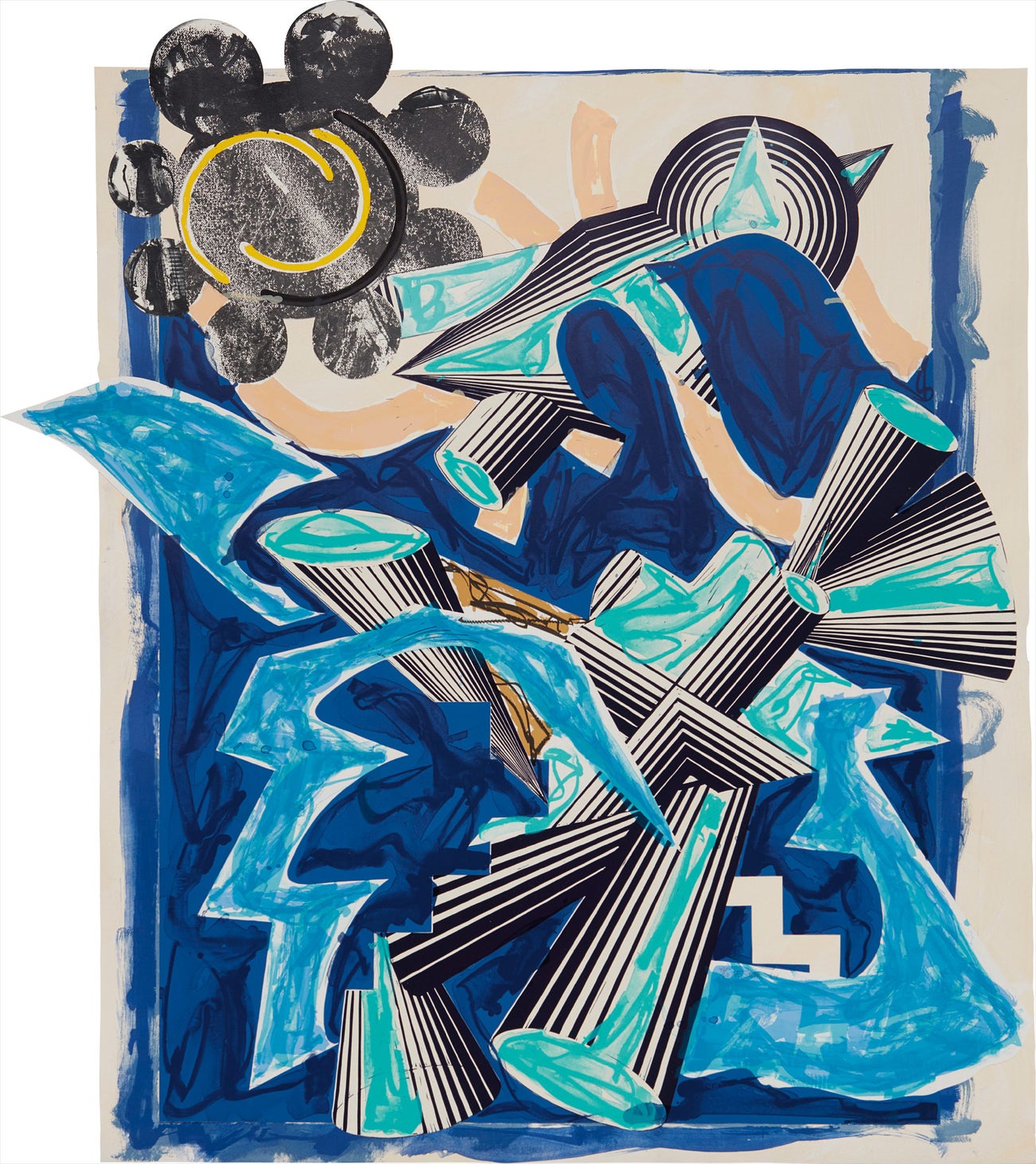 Lithograph, linocut and screenprint in colors with hand-coloring and collage, on T.H. Saunders and Somerset paper, the full sheet.