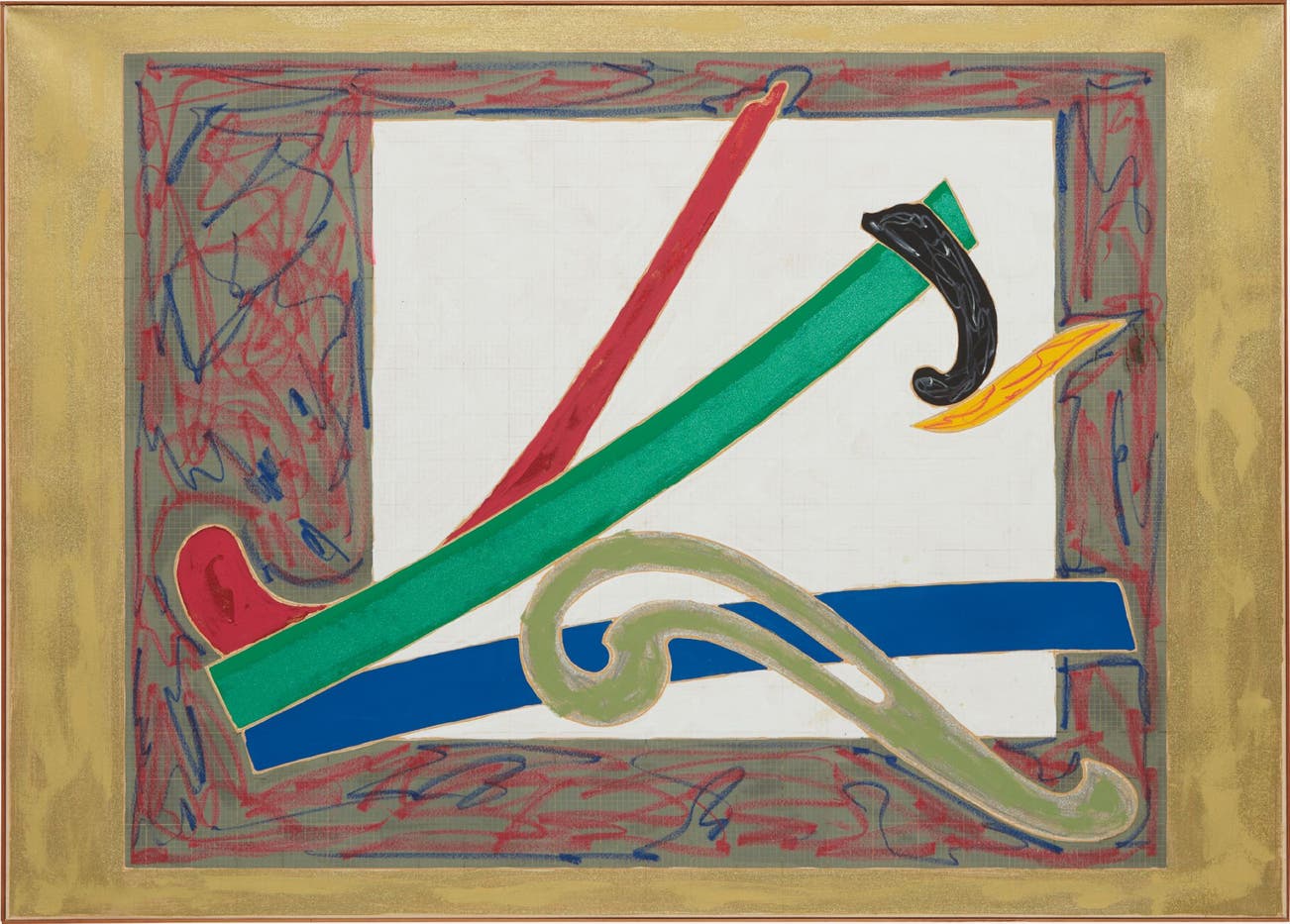 signed, titled and dated "WAKE ISLAND RAIL F. Stella '77" on the reverse