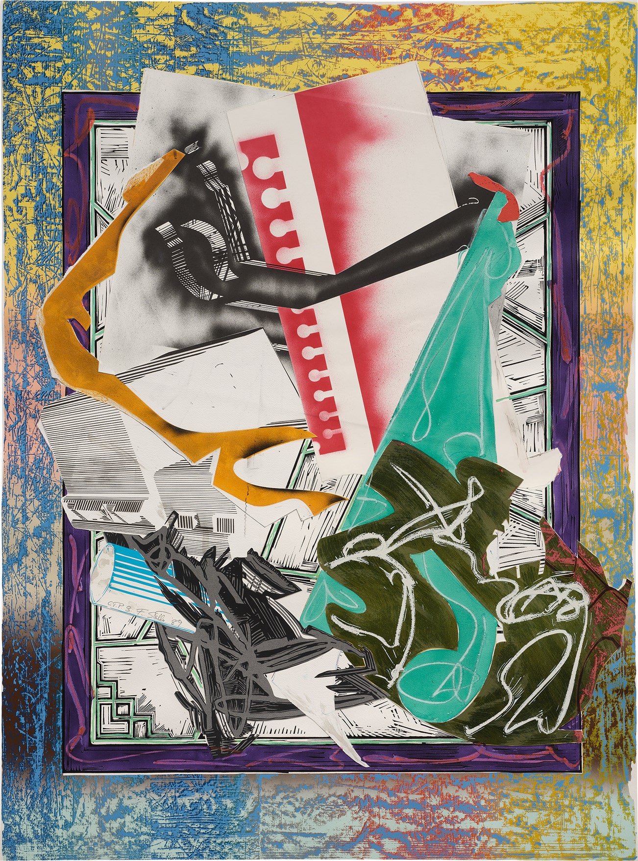 Monumental screenprint, lithograph and linocut in colors with hand-coloring and collage, on T.H. Saunders paper, the full sheet.