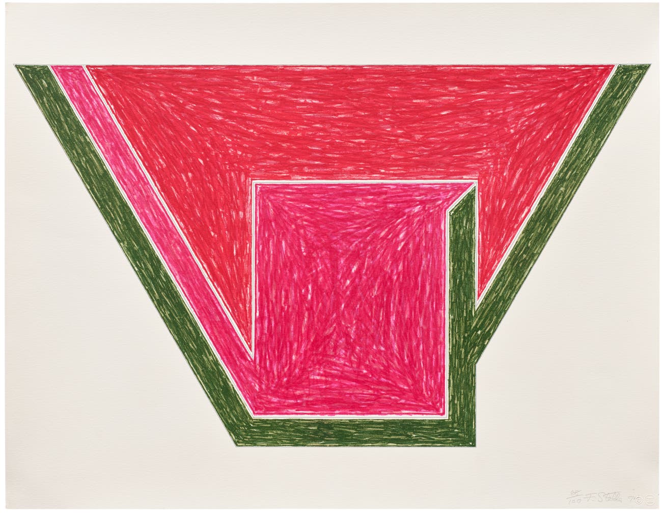 American | B. 1936 D. 2024Frank Stella is recognized as the most significant painter that transitioned from Abstract Expressionism to Minimalism. He believed that the painting should be the central object of interest rather than represenative of some subject outside of the work. Stella experimented with relief and created sculptural pieces with prominent properties of collage included. Rejecting the normalities of Minimalism, the artist transformed his style in a way that inspired those who had lost hope for the practice.