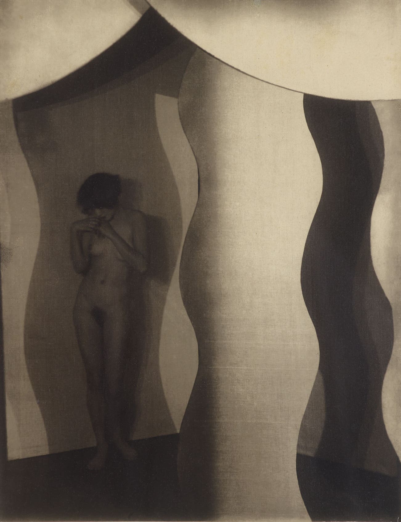 The pigment print, of which the present lot is an example, was a process that Drtikol used throughout his career but almost exclusively during this later period. While he embraced more painterly methods of printing (often combining bromoil, coal, and multi -color pigment in a single print) - as his vision moved away from Pictorialism towards a more modernist approach to photography, he found the pigment print process alone to be the truest way to represent the form in space. Today, Drtikol’s pigment prints of nude compositions from 1925-1930 are his most sought after prints on the market.