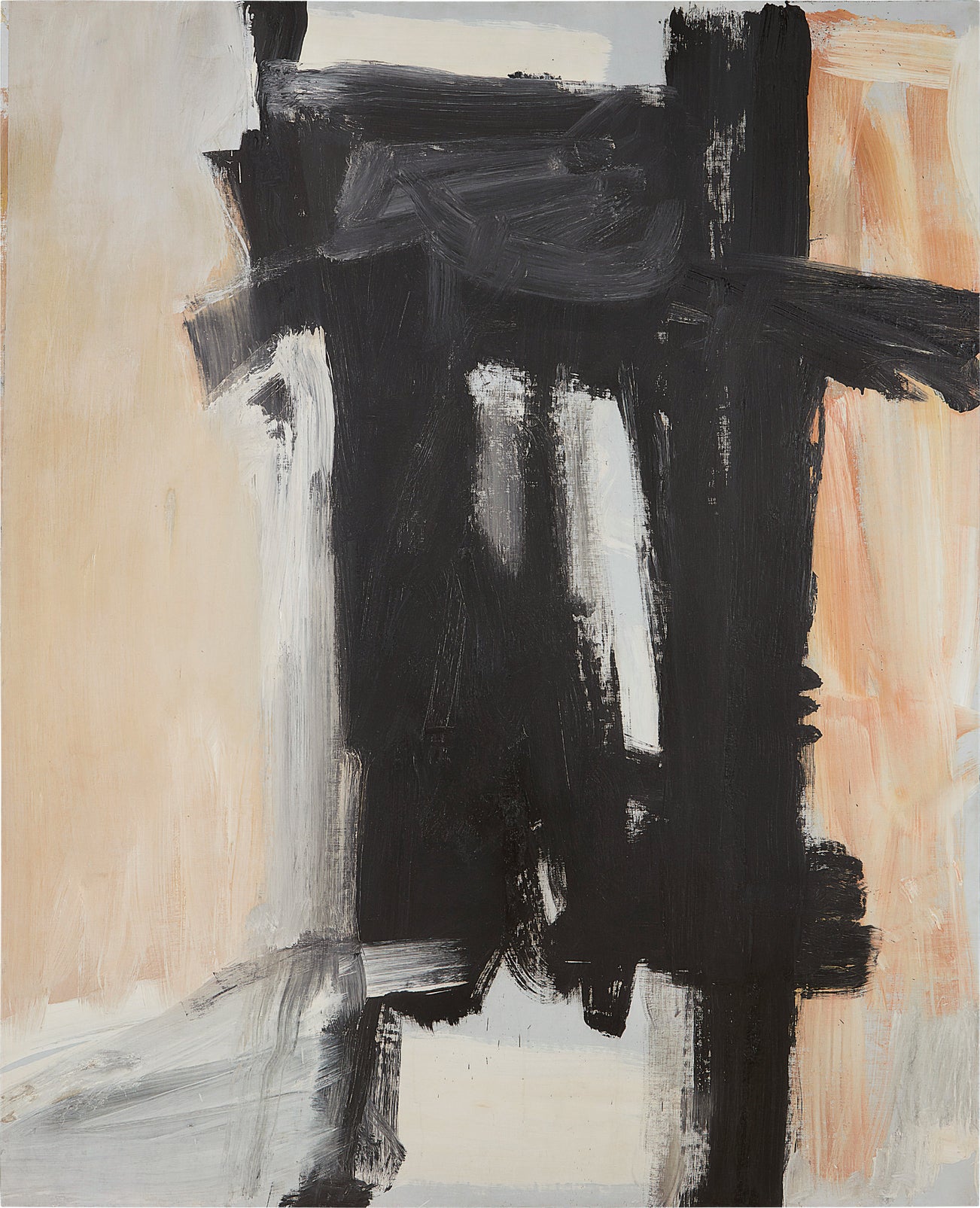 Embodying the extraordinary compositional balance of energy and restraint that catapulted Franz Kline to critical acclaim, Sawyer is the paradigm of the Abstract Expressionist artist's pictorial idiom. Like an immense architectural structure seen up close, Sawyer towers over the viewer with its all-absorbing, heroic scale. Kline's signature black gestures, etched as deeply into the landscape of post-war art as Jackson Pollock's “drips” or Barnett Newman’s “zips”, are here thrust across the vast canvas to form a grid-like structure. Painted in 1959 at the peak of Kline’s career, the painting exemplifies the artist’s seminal move toward color just three years prior. Subtle but dominated by black and white, the work is enlivened by gesturally painted impastoed passages of cream, ochre, peach, chalky whites and greys that infuse the composition with a soft, atmospheric tone. This gives rise to a sensation of infinite, limitless space, while simultaneously pushing the immense black form forward towards the viewer. In 1960, the same year Kline represented the United States at the 30th Venice Biennale, Sawyer was debuted in Kline’s solo exhibition at the Sidney Janis Gallery, New York, alongside some of the artist’s now most esteemed masterpieces, including Black, White and Gray, 1959, the Metropolitan Museum of Art, New York, Dahlia, 1959, the Whitney Museum of American Art, New York, Orange and Black Wall, 1959, the Museum of Fine Arts, Houston, and Orleans, 1959, the Museum of Contemporary Art, Los Angeles. The works exhibited here stand as remarkable examples of the bravura of Kline's late oeuvre, which tragically ended with his premature death just two years later in 1962. It is testament to Sawyer’s significance within Kline’s oeuvre that it was celebrated in the artist’s first posthumous institutional retrospective exhibition in the United States at the Whitney Museum of American Art, New York in 1968-1969.