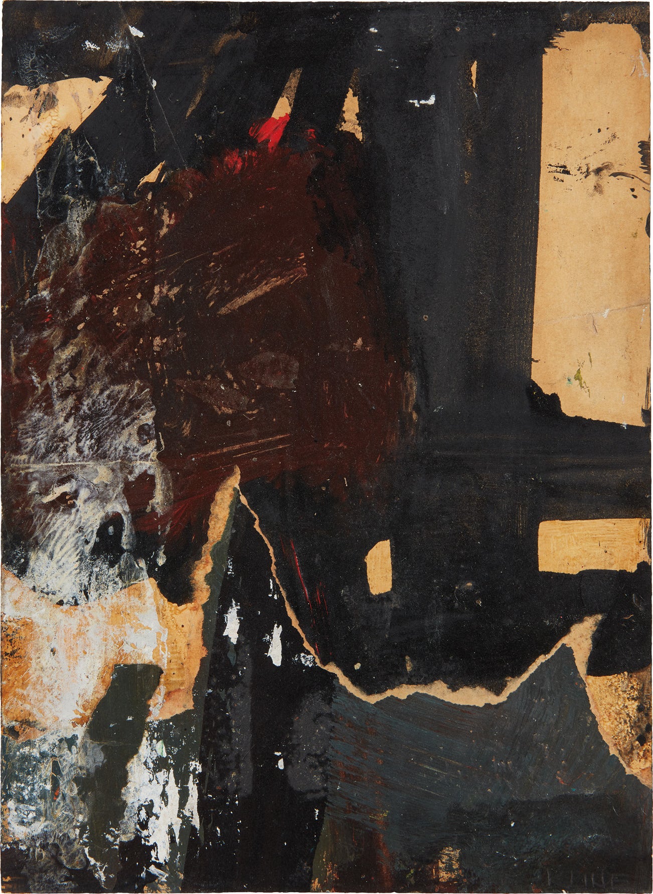 Given that Kline’s seminal black-barred idiom originally emerged from the brush and ink drawings that depicted his urban surroundings in the 1940s, it is fitting that Black, White, Brown should be constructed of oil and ink on paper collage, a favored compositional structure for Kline’s small-scale works. In his studio, Kline would carefully adapt highly concentrated mixed-media collages and later project these works to large canvases. The present work powerfully puts into focus how Kline, like fellow Abstract Expressionists Willem de Kooning and Robert Motherwell, pioneered the medium of collage. Kline not only fused collage with the bold, fluid brushstrokes of his painterly practice, he in fact applied the notion of painterliness to collage itself – powerfully emulating the bold gesture of painting through the act of tearing paper on a more intimate scale.