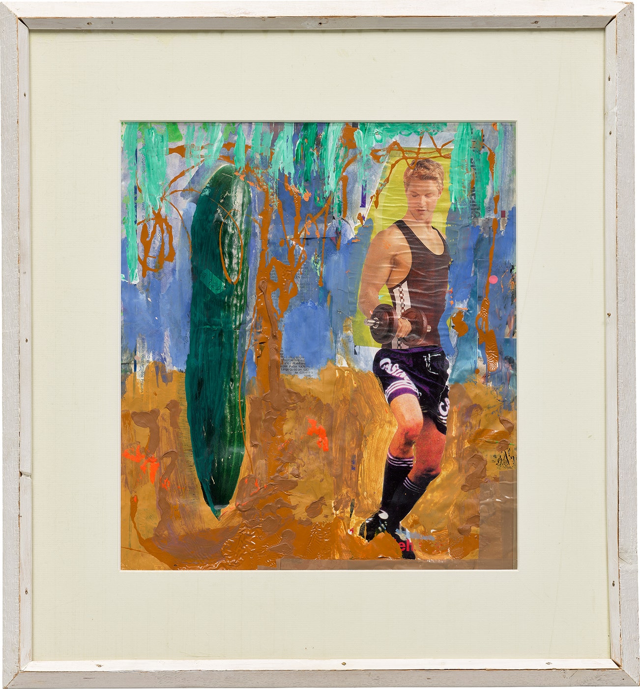 double-sided newspaper, acrylic, tape and photo collage on paper