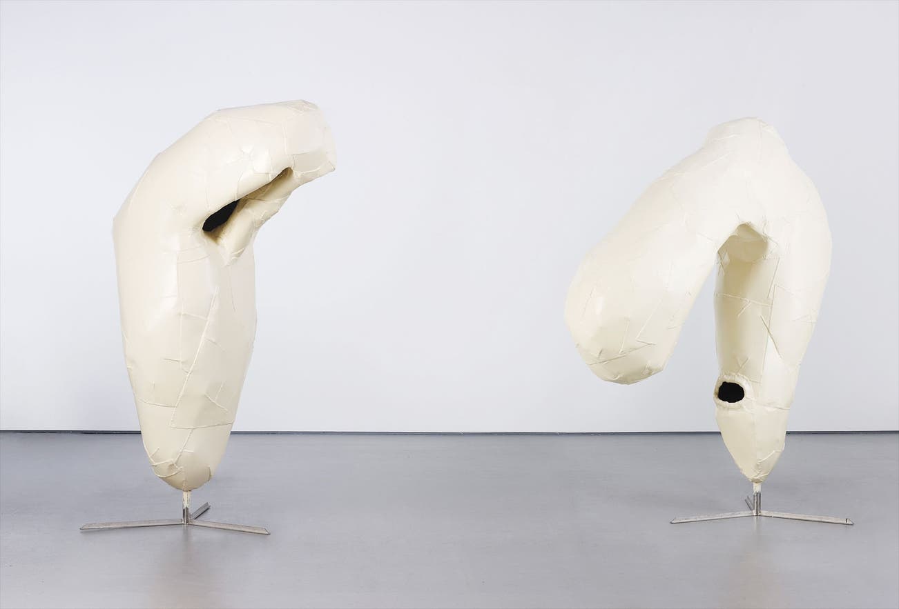 West rose to notoriety in the 1970s with pieces that he called Passtücke or Adaptives—white sculptural objects formed of plaster, papier-mâché or other found media—that he continued to produce into the 1980s and would later elaborate and expand upon through the end of his life. The present lot, Untitled (Two heads), 2004 is a central work of the Adaptives series, and moreover, of West’s evolution as an artist. While still operating at the periphery of performance and art-object that came to define his career, the work’s materiality—lacquered aluminum, rather than plaster—speaks to a decidedly more permanent and further realized vision of would ultimately become West’s legacy, without compromising on the eccentricities that first set him apart.