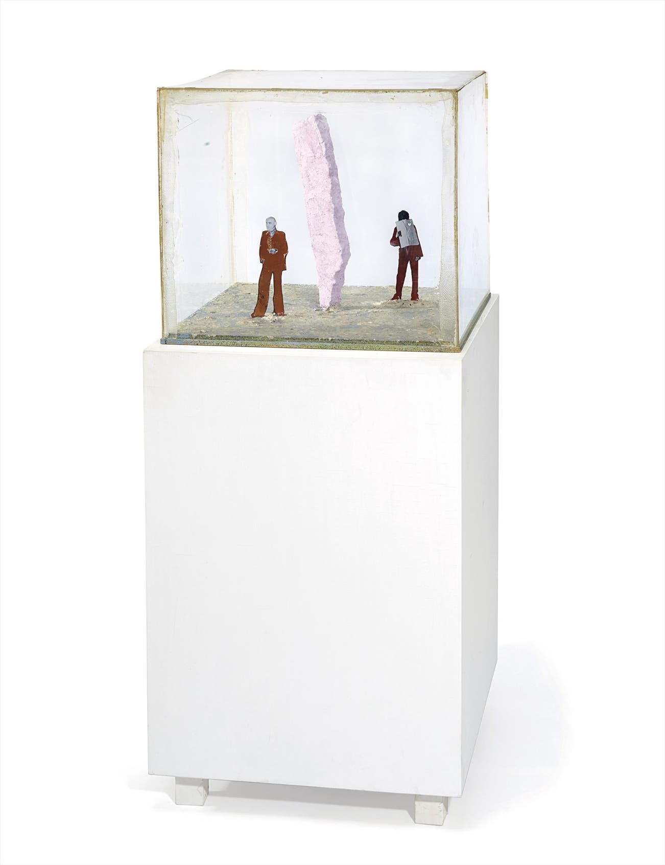 Suffused in various pictorial and avant-garde practices of post-war European art, the work of Franz West is a marriage of composed delicacy and participatory objects. Borrowing the the elongated figures of Diego Giacometti and the manifold formal satire of Sigmar Polke, the artist decidedly distanced himself from the divisive Viennese Actionist’s existential throes to animate engagement with his viewers in lively dialogue. o.T. (model) from 2007 is one such realization of this iconoclasm, in which forms and figures vie for aesthetic dominance and the idea of art as autonomous is utterly crippled. The domestic materials, of wood, foam, and paper, are at once complemented and abrogated by the clean linear elements of the figures and their deeply saturated colors, particularly the coppery tones of the figure’s pants. The central coral element, serving as a barrier between the duopoly of figure cutouts, halts communication in the tableau—where are these figures in space, in what time, in what place? As both an acute amalgamator and trenchant adaptor, the present lot demonstrates West’s lateral journey to contemporary art, reflecting and jiving, producing a boundless multimedia landscape that incites an effective blending of sculpture, painting and collage. The artist himself thoughtfully explained, “One may think that I try to bring the art object out into the world since my works sometimes appear to have a practical function, but really it's the other way around: things in the world can, under certain special circumstances, enter the realm of art. And, in fact, once they have entered this realm they are art.” (Franz West in "A Thousand Words: Franz West", Artforum, vol. 37, no. 6, February, 1999)
