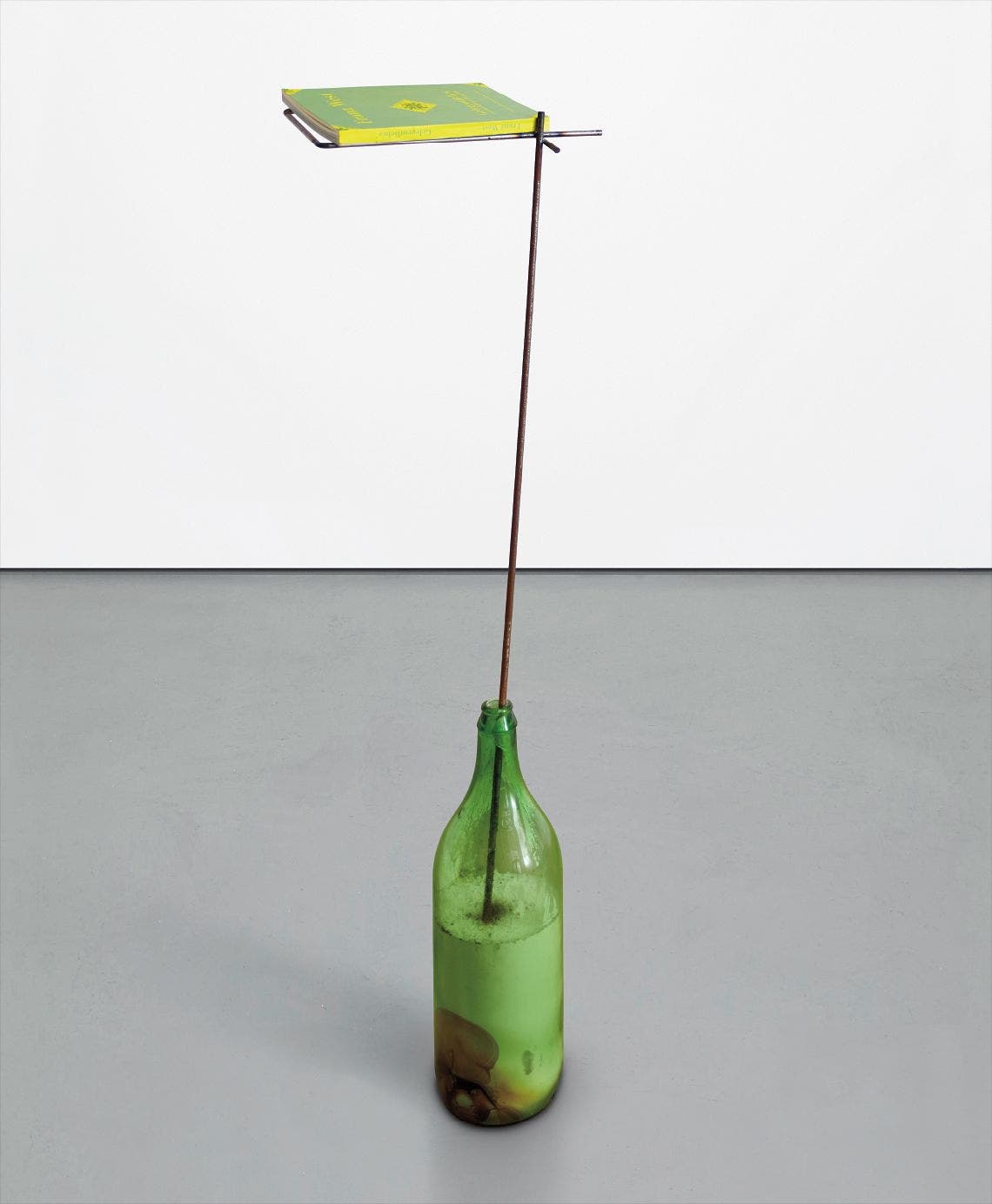 Multiple comprising 2 litre glass wine bottle, cement and iron, with accompanying book by Franz West titled Gelegentliches: zu einer anderen Rezeption,