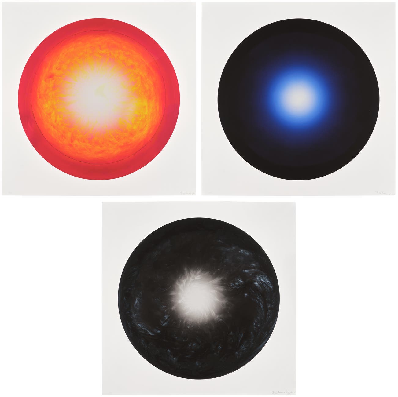 Three archival pigment prints in colors, on wove paper, with full margins.