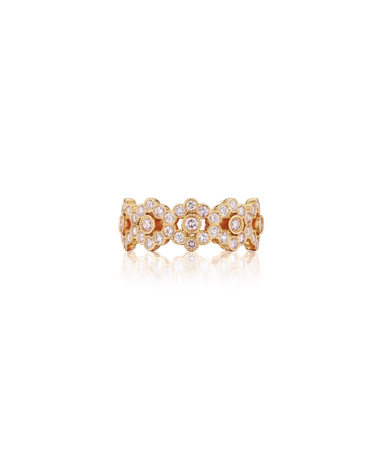 Set with brilliant-cut diamonds and diamonds of pink tint, mounted in 18K rose gold, size 6, signed Fred Leighton, with hallmark.